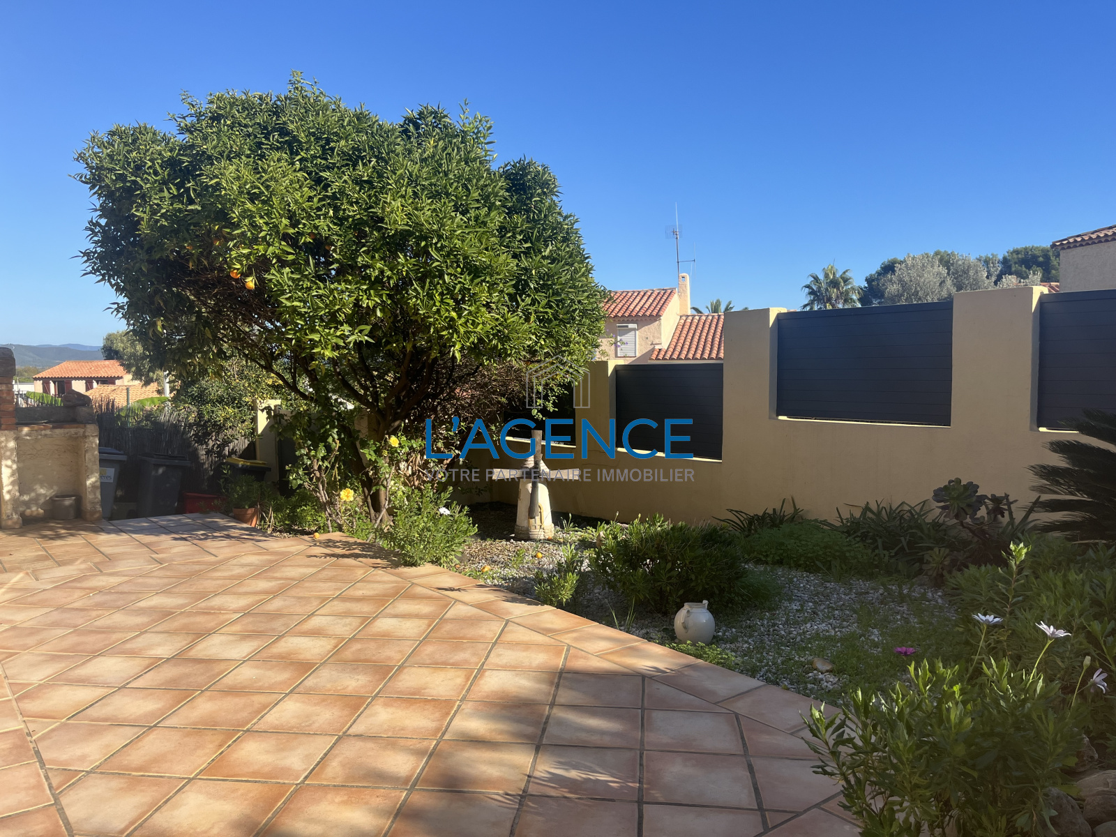Le jardin de 274 m² est entièrement arboré et sans vis-à vis. Cette villa bénéficie de belles prestations : grandes baies en double vitrage, volets électriques, climatisation réversible. Située au calme dans un lotissement, cette villa est proche de toutes commodités et non loin des plages de l'Almanarre.