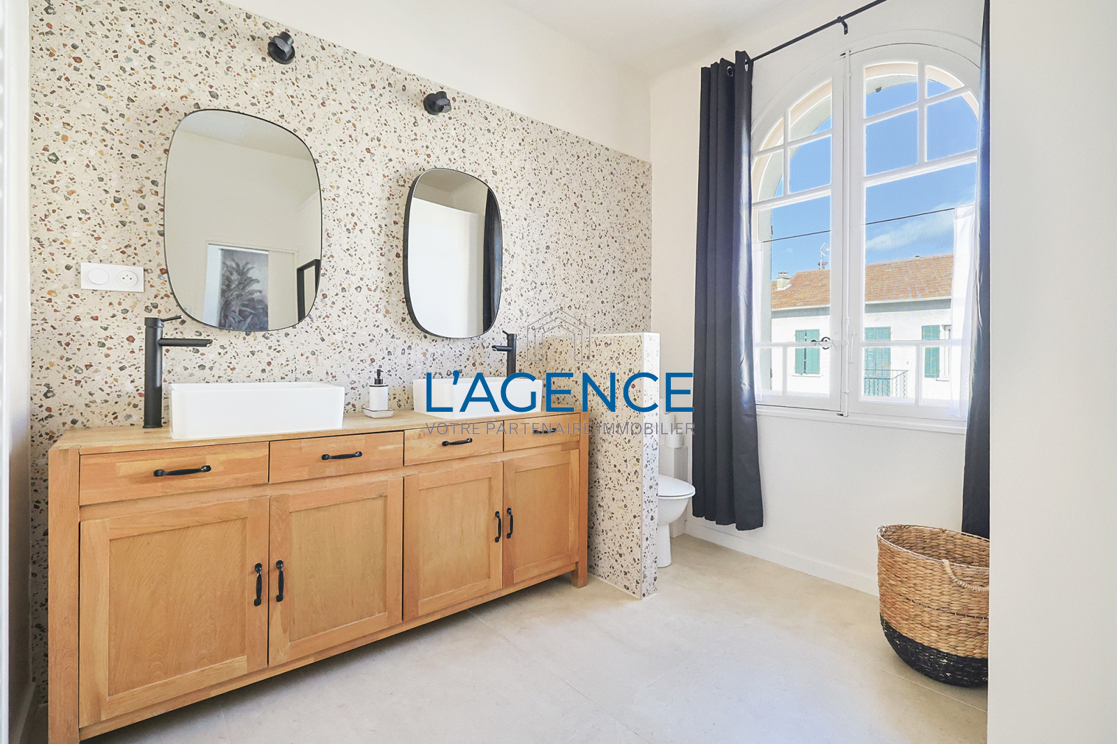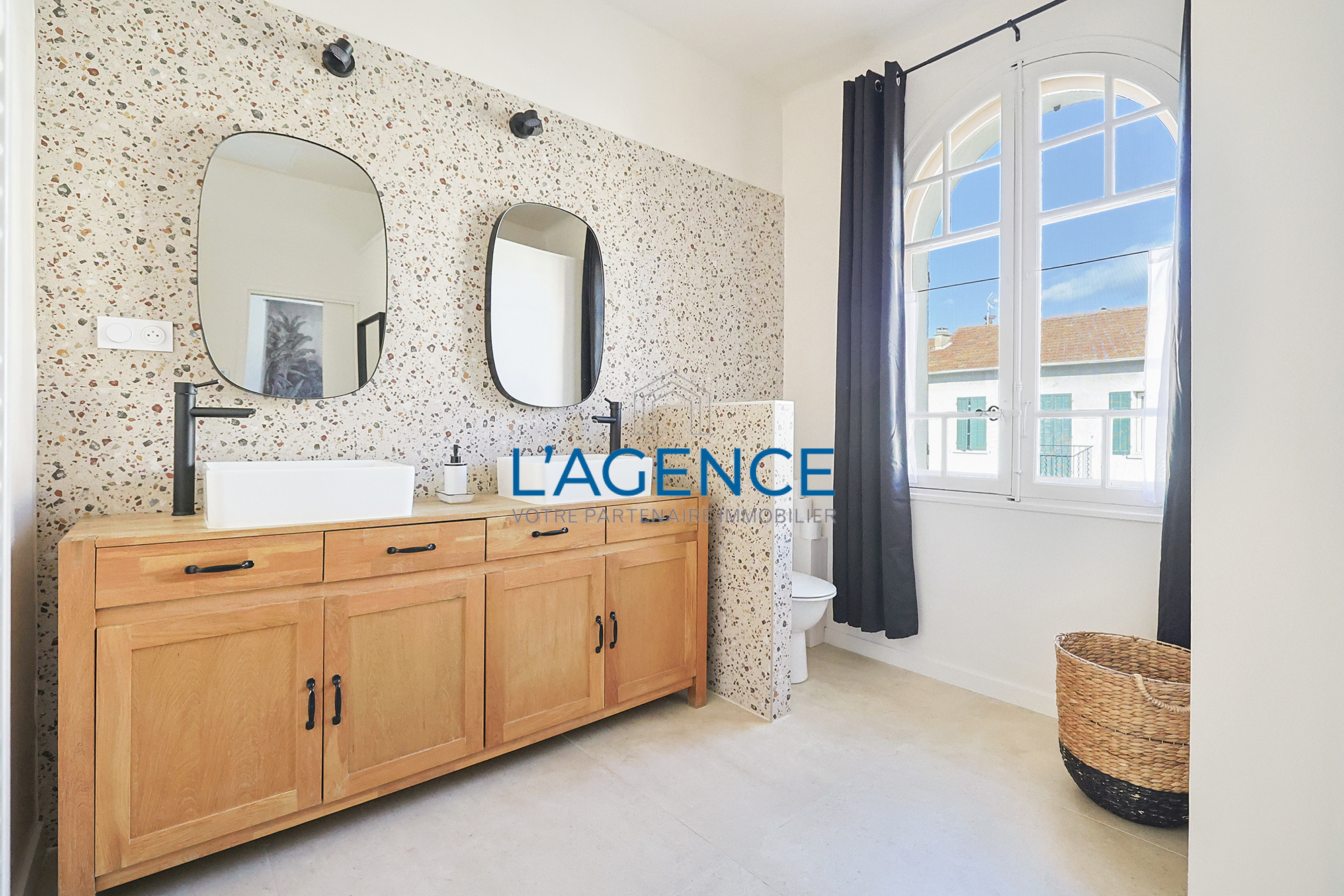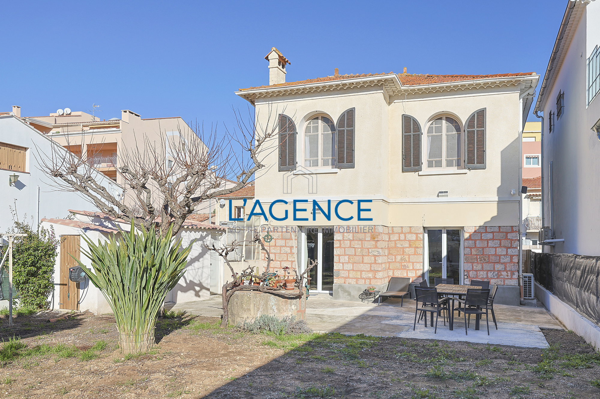Hyères (83400)Idéalement située à la gare de Hyères, proche des commerces et des commodités, au calme au fond d'une impasse, cette villa individuelle de 120m² des années 50 entièrement rénovée avec goût, sur une parcelle de 380m², piscinable.