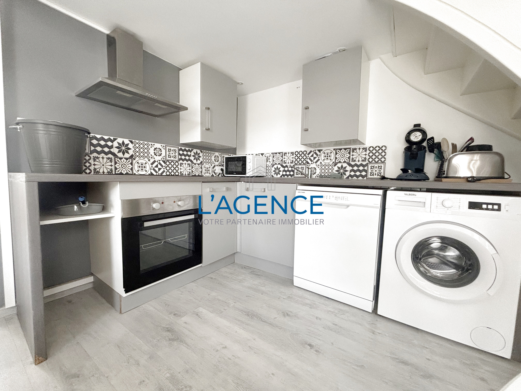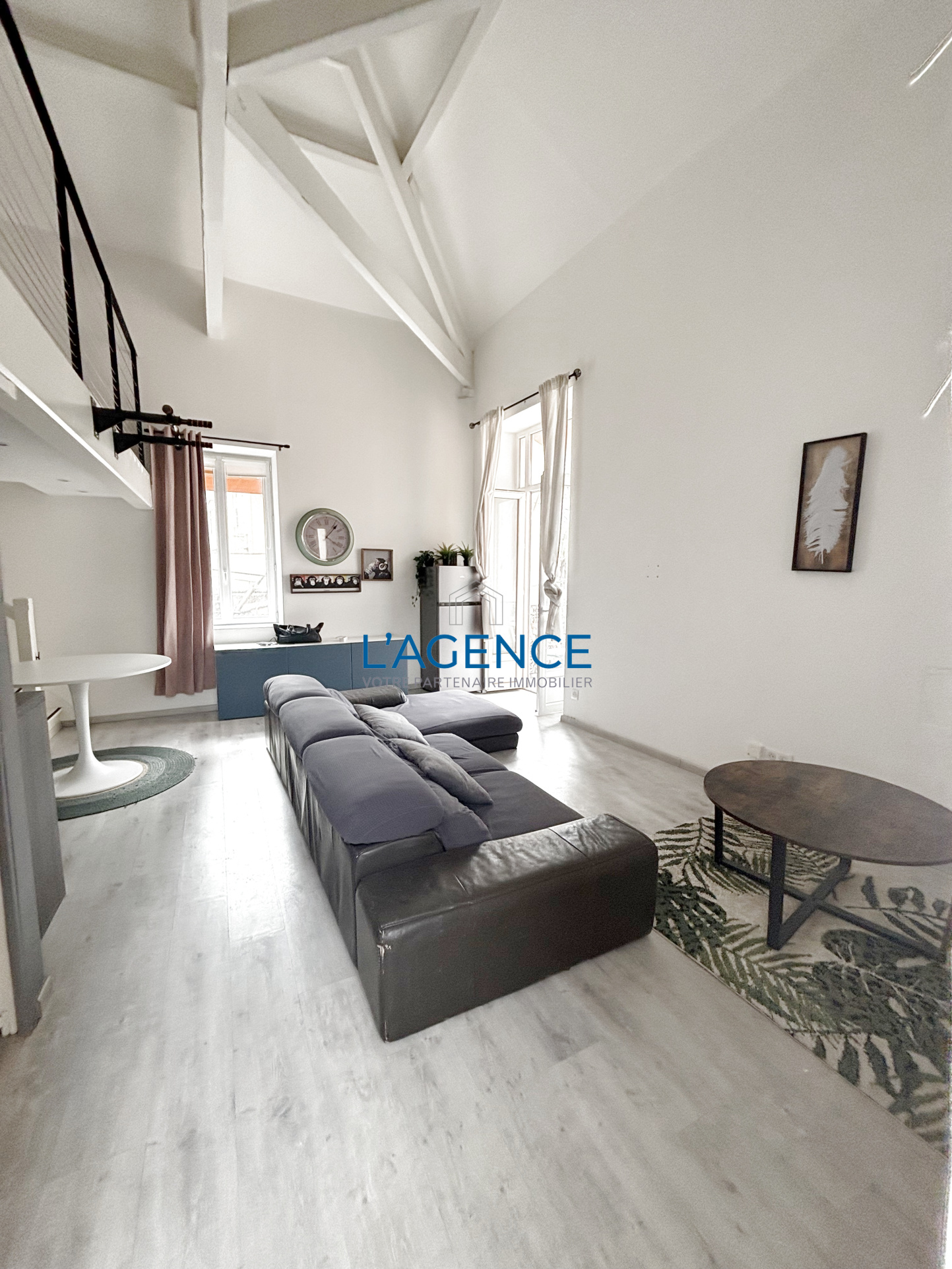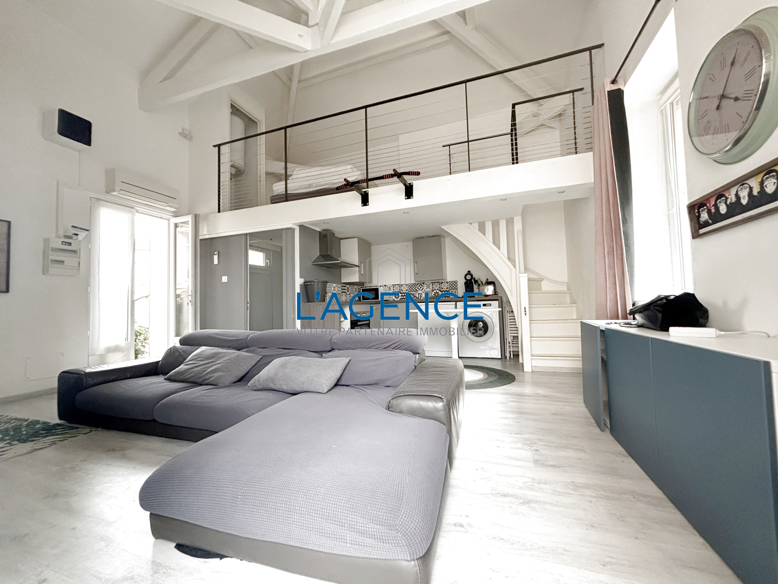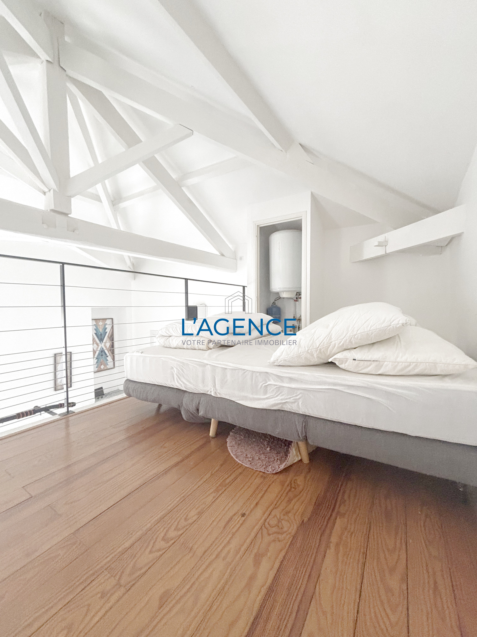 L'appartement comprend un tres bel espace de vie de 24 m2 avec une belle hauteur sous plafonds et une cuisine aménagée et équipée avec dans le prolongement un balcon avec vue sur l'avenue gambetta . Salle d'eau avec wc séparé . A l'étage une chambre avec placard . Idéalement placé il bénéficie de belles prestations comme le double vitrage , la climatisation et une grande cave de 10 m2 .