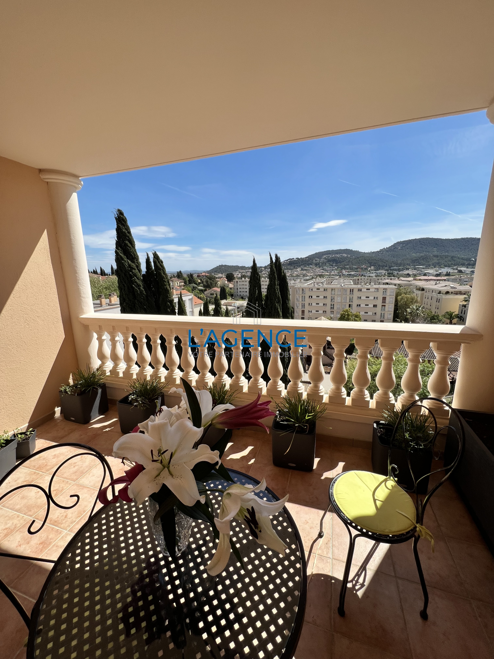 Hyères (83400)Beau T3 en parfait état avec terrasse de 12m², trés belle vue dégagée en étage élevé. Il se compose d'un grand séjour avec cuisine semi-ouverte de 36m² donnant sur la terrasse au Sud, deux belles chambres, salle de douche .