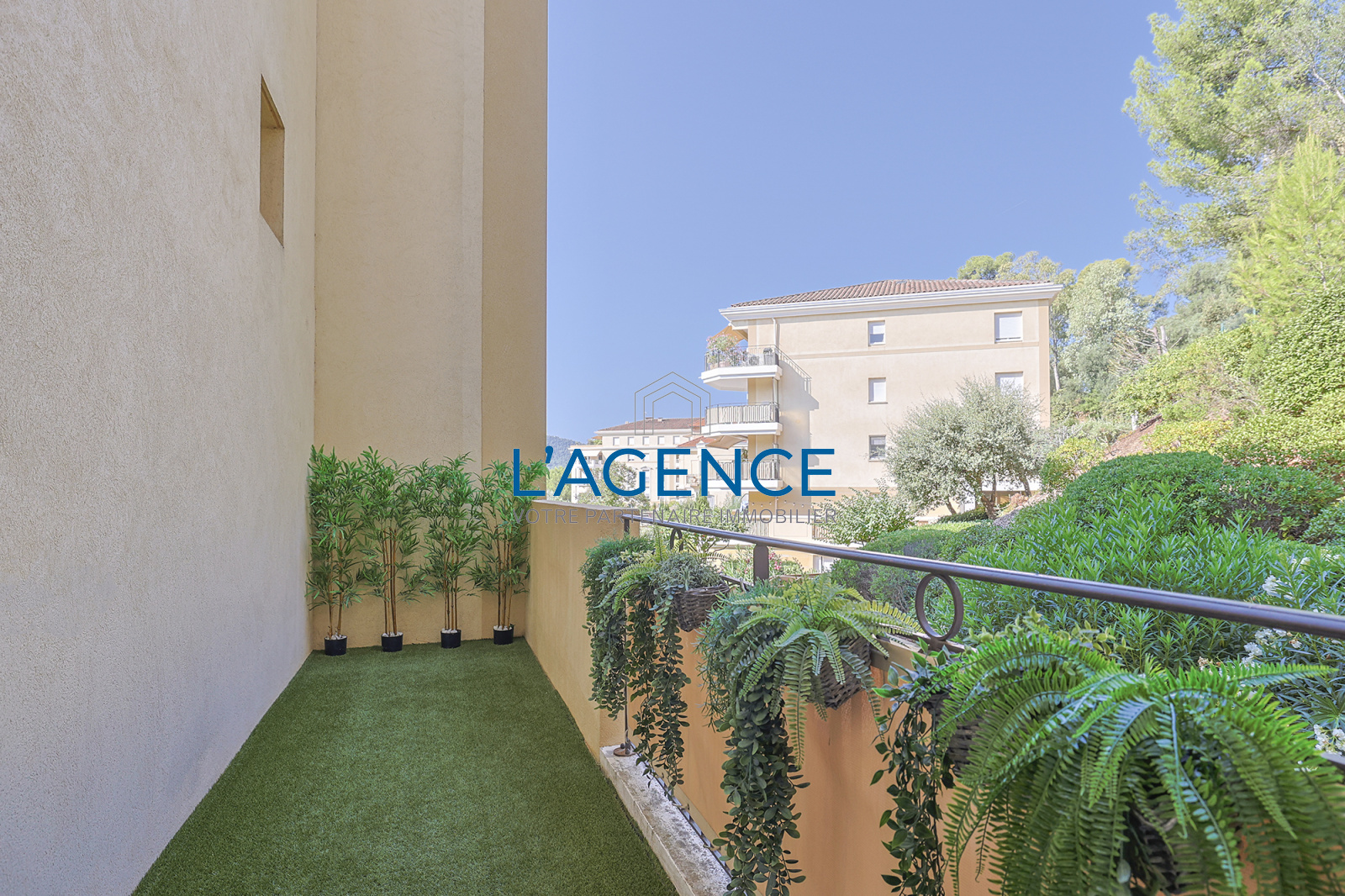 Hyères (83400)Hyères Ouest dans résidence de standing, Appartement de type T3 de 65m² au premier étage avec ascenseur. Il se compose d'un salon séjour cuisine de 30 m² ouvrant sur une terasse de 12 m² exposé au Sud. Dégagement avec placard, salle d'eau, WC séparé. 2 chambres dont une avec placard et une autre ouvrant sur une terrasse ouest de 9 m². Cellier sur le palier. Garage avec électricité. Exposition Sud Ouest . Appartement au calme. Copropriété verdoyante et arboré. A 10 minutes du plein centre ville à pied.