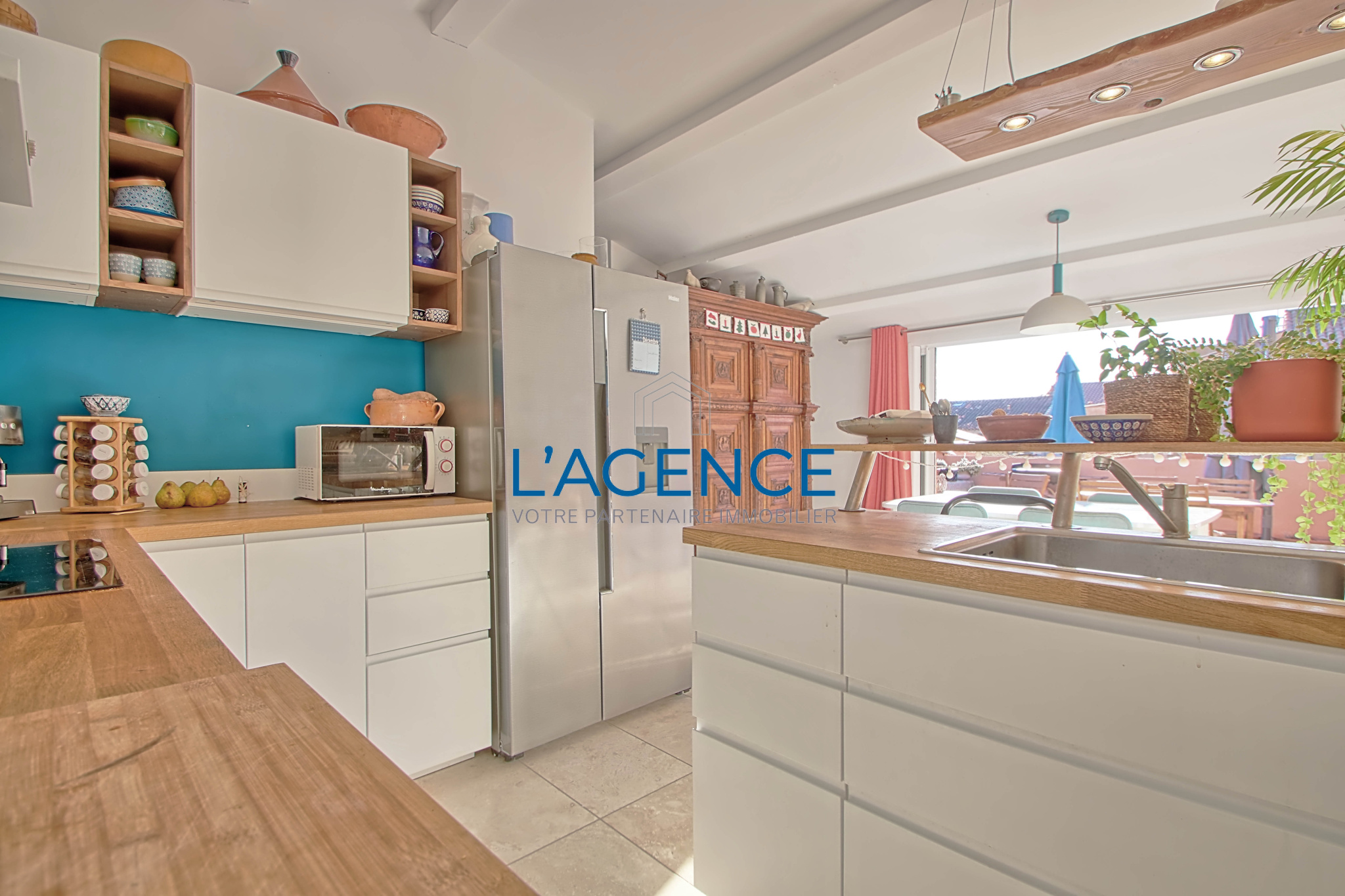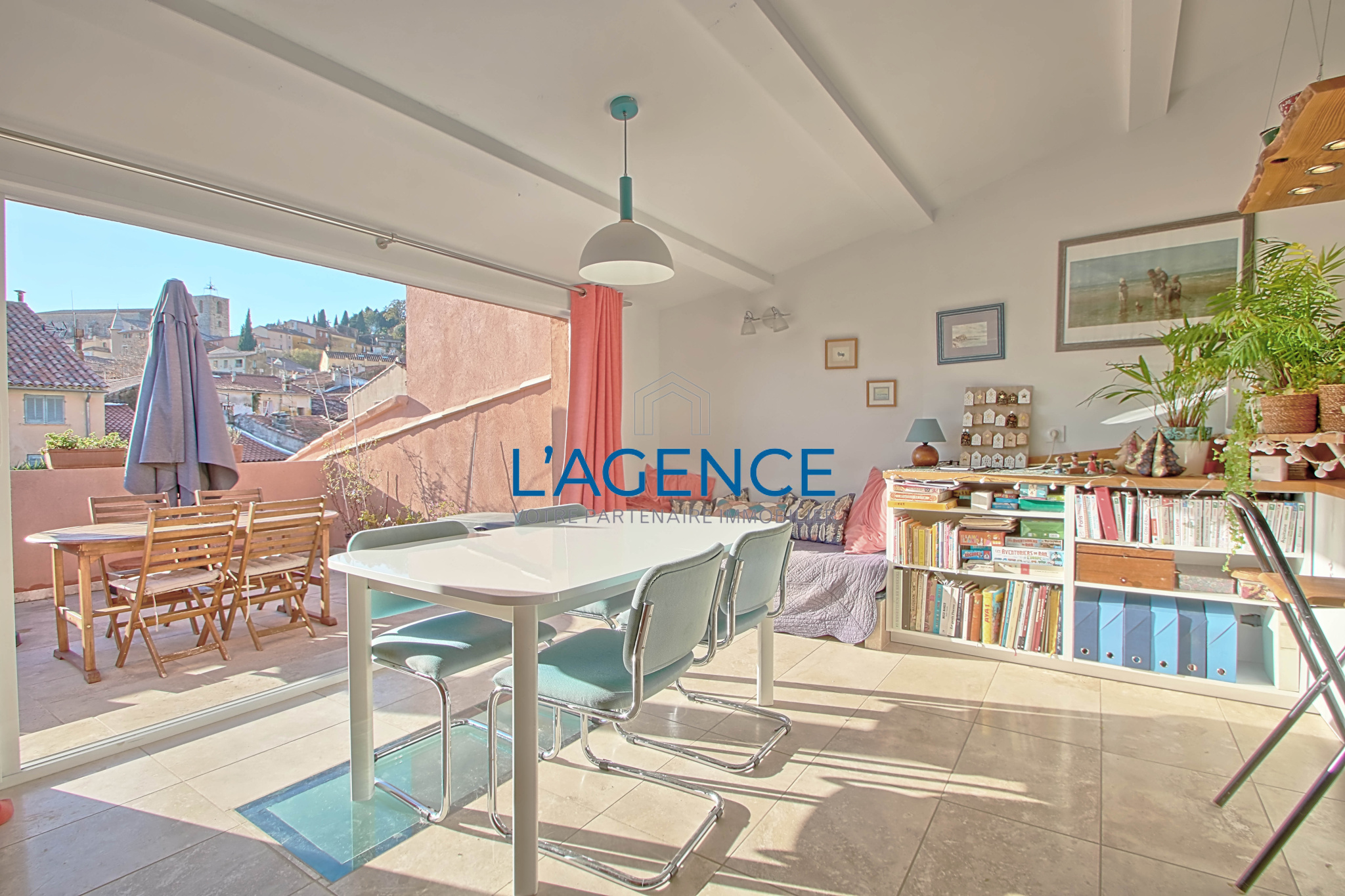Hyères (83400)Hyères dans le centre historique, appartement T3/4 de 96m² en duplex comprenant au rez-de-chaussée : entrée, WC, salon, buanderie, deux suites parentales avec salle d'eau et salle de bain ; à l'étage : cuisine ouverte sur séjour donnant accès à une belle terrasse exposée sud/ouest, vue sur le château et les toits de Hyères, une cave de 16m² ainsi qu'un garage pour motos ou petite voiture complète l'ensemble. Aucun travaux à prévoir, rénovation effectuée en 2019, double vitrage, cilmatisation réversible. A visiter sans tarder
