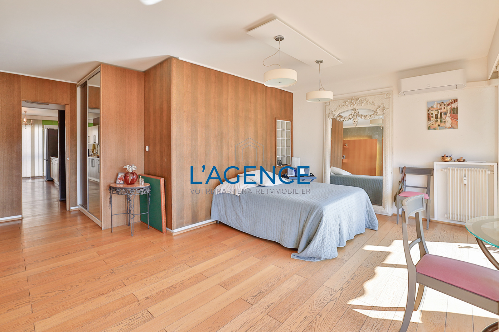 Hyères (83400)Hyères centre ville appartement T5 de 154 m² dans une résidence de standing avec ascenseur, en hyper centre ville, revisité par un architecte, exposé au Sud. Dès l'entrée cet appartement offre un vaste salon séjour de 43 m² donnant sur une terrasse en longueur de 17 m². Un vaste dégagement dessert un espace nuit qui se compose de 4 chambres dont une avec salle d'eau, une chambre principale de 31 m² donnant également sur la terrasse et deux autres chambres dont une avec dressing. Salle de bains, wc séparé, bureau. Cet appartement se distingue par sa rénovation il y a quelques années et ses volumes ainsi que ses nombreuses possibilités. Exposition Sud, climatisation réversible, parquet. Garage en sous sol ainsi que deux caves complètent les annexes.