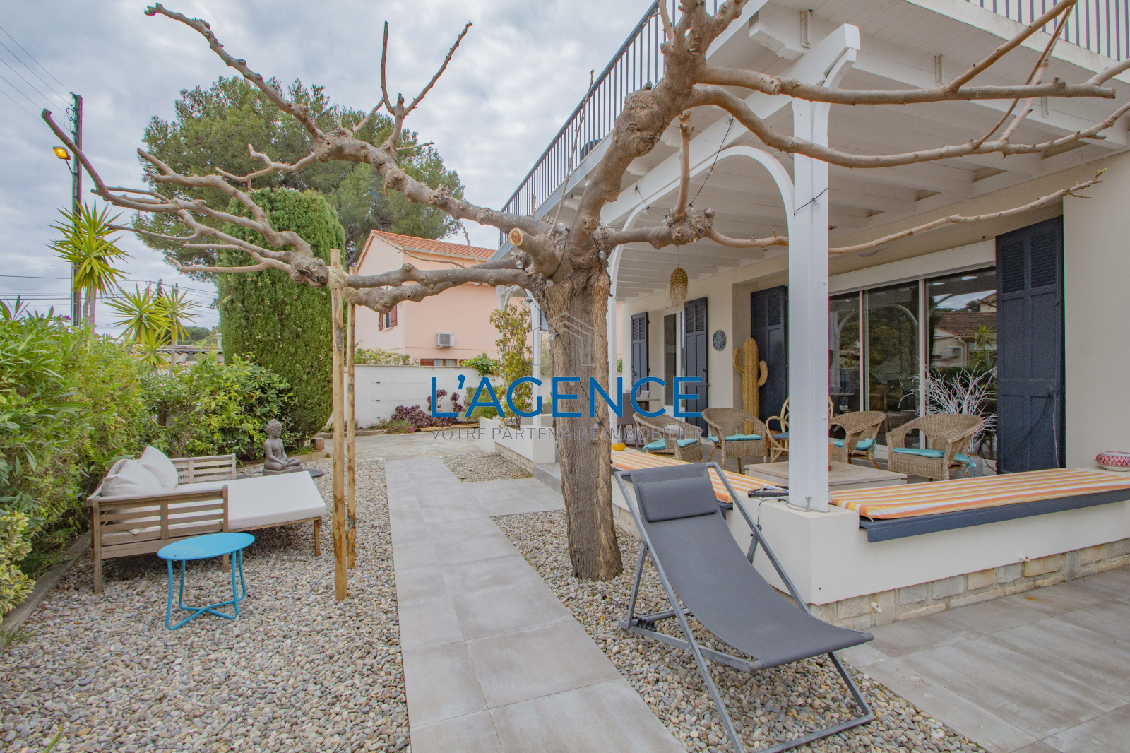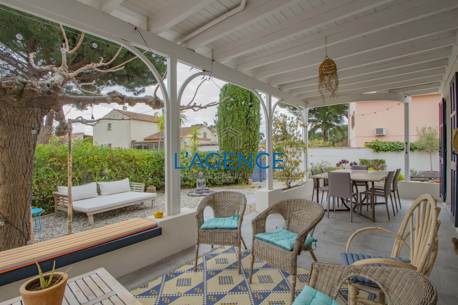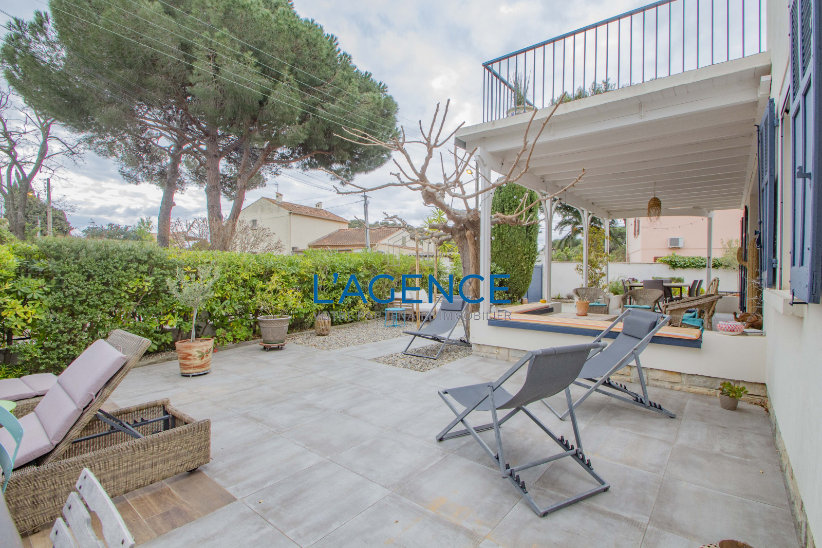 Hyères (83400)L'Ayguade villa 150m2 entièrement rénovée en 2014 au calme au fond d'une impasse et à 5 mn de la plage et des commerces.Elle se compose d'une belle pièce à vivre avec poêle à bois,une cuisine équipée et récente, cellier lingerie spacieux.De plain pied trois chambres dont une en suite parentale,une salle de bain séparée pour les deux autres chambres, à l'étage 2 chambres en mansarde avec salle d'eau.Climatisation réversible.Beau jardin piscinable.Nombreux rangements en cabanons.