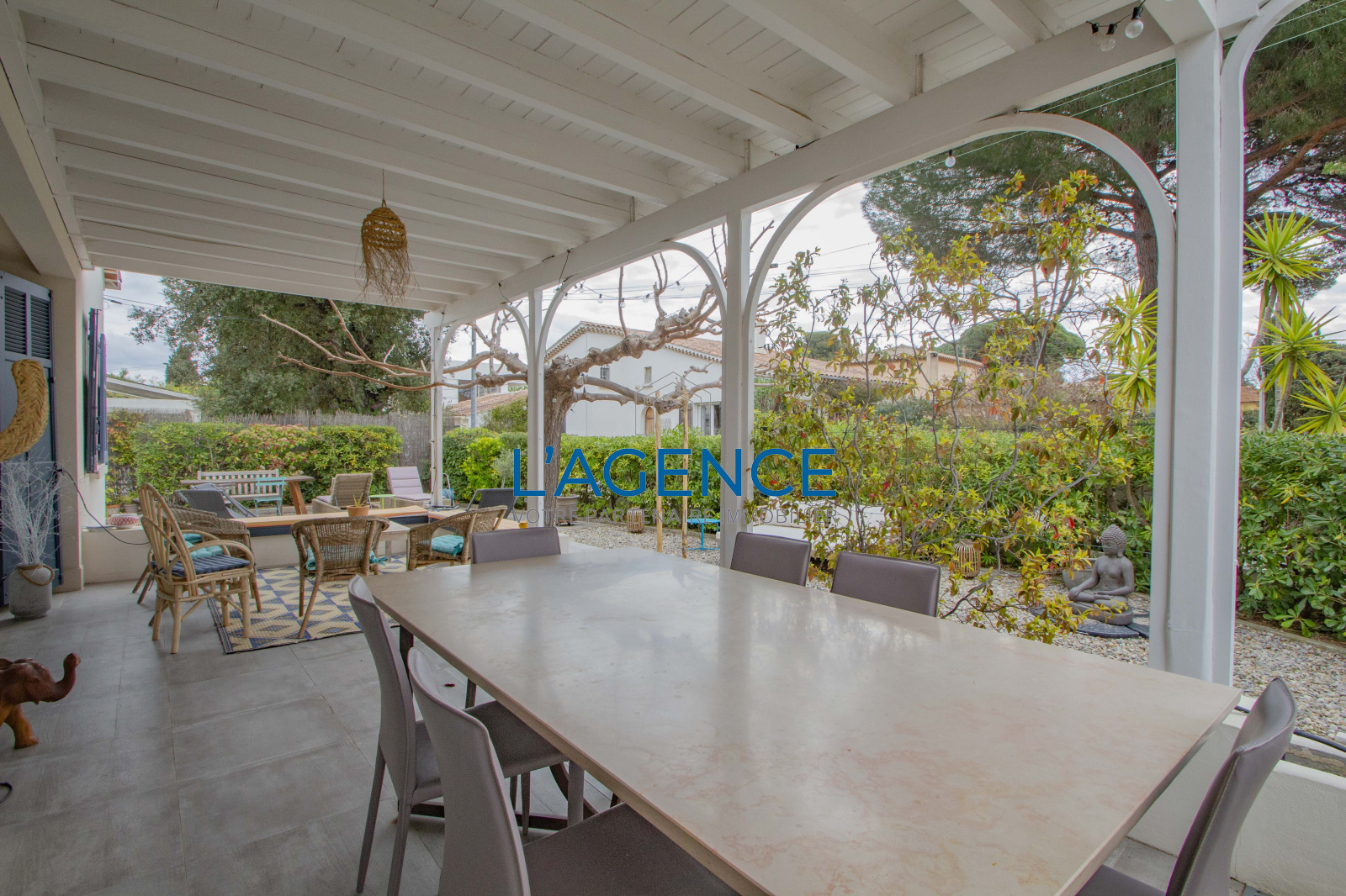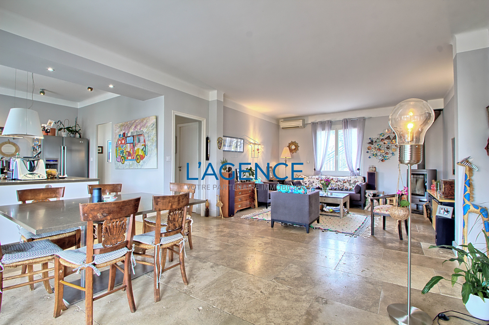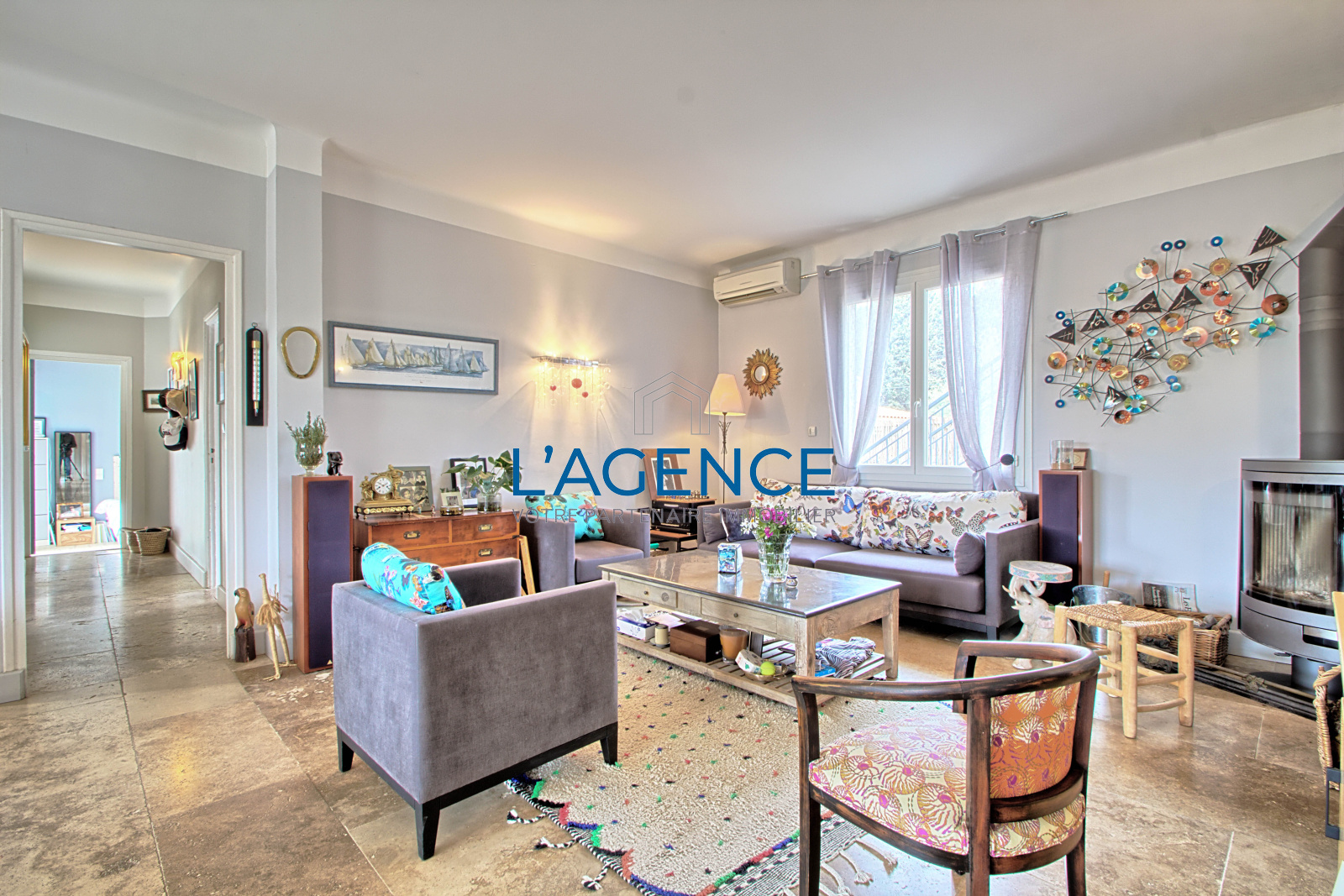 Hyères (83400)L'Ayguade villa 150m2 entièrement rénovée en 2014 au calme au fond d'une impasse et à 5 mn de la plage et des commerces.Elle se compose d'une belle pièce à vivre avec poêle à bois,une cuisine équipée et récente, cellier lingerie spacieux.De plain pied trois chambres dont une en suite parentale,une salle de bain séparée pour les deux autres chambres, à l'étage 2 chambres en mansarde avec salle d'eau.Climatisation réversible.Beau jardin piscinable.Nombreux rangements en cabanons.
