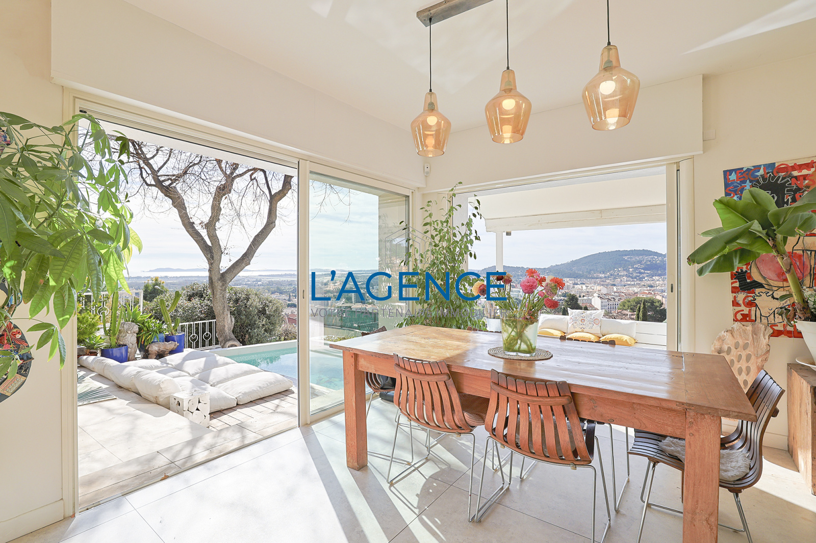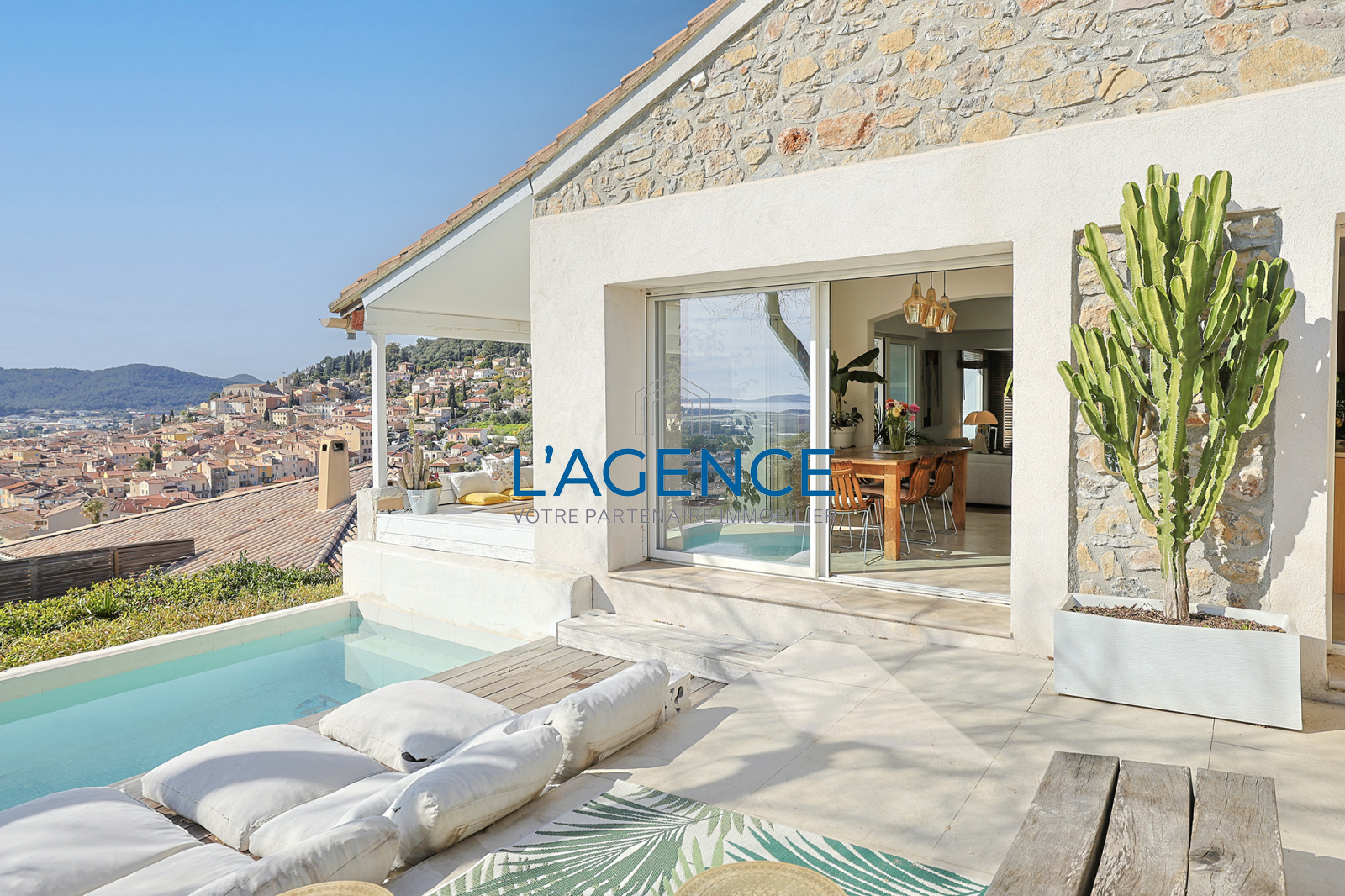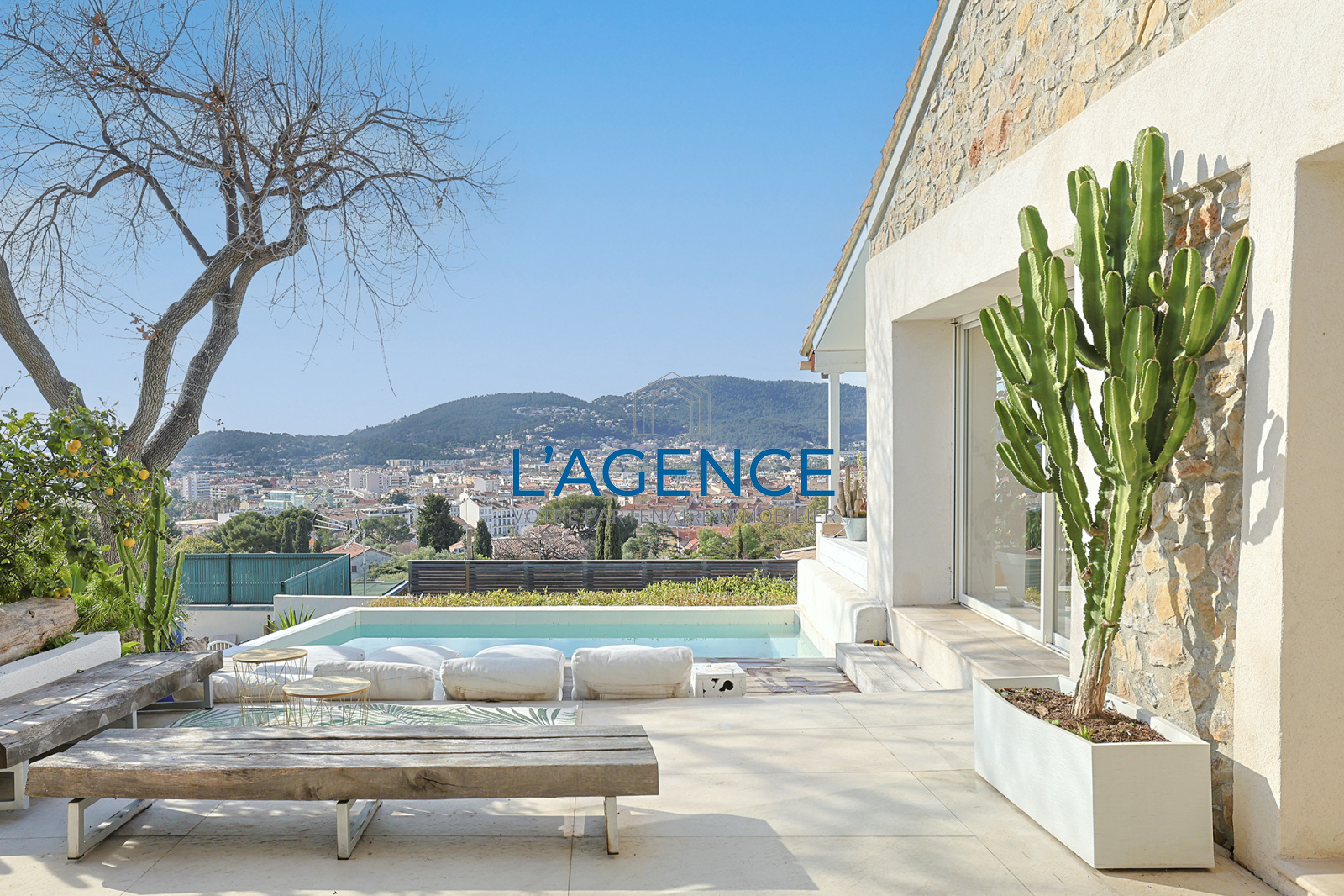 Hyères (83400)Dans le secteur recherché de Frédéric Mistral, au calme et vue mer, centre ville à pied en 5mn, superbe villa 5 ch rénovée avec goût. Aucun vis à vis et très belle vue dominante.