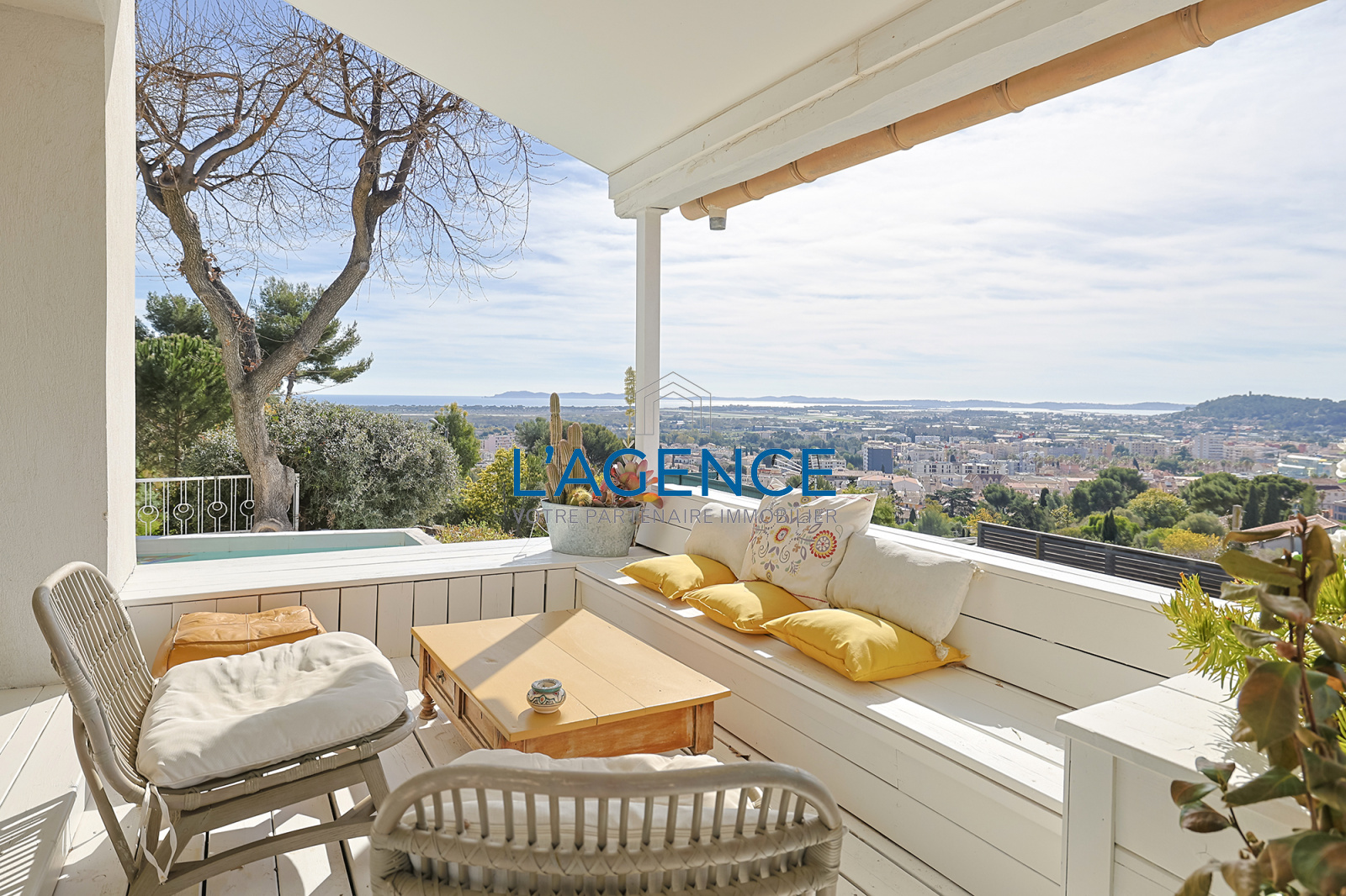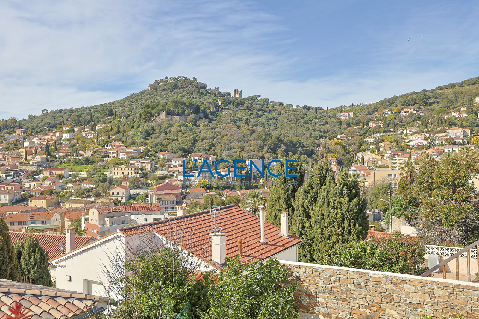 Hyères Chateaubriand, villa 200m² dominante, avec piscine, sur 450m², vue mer et ville
