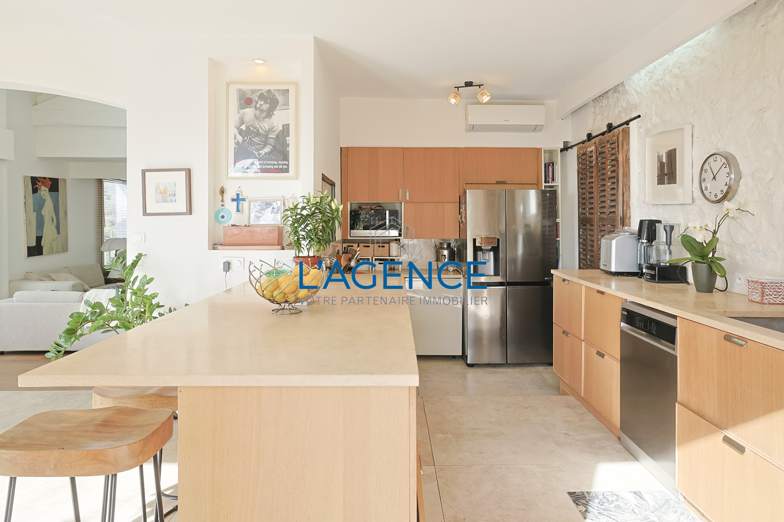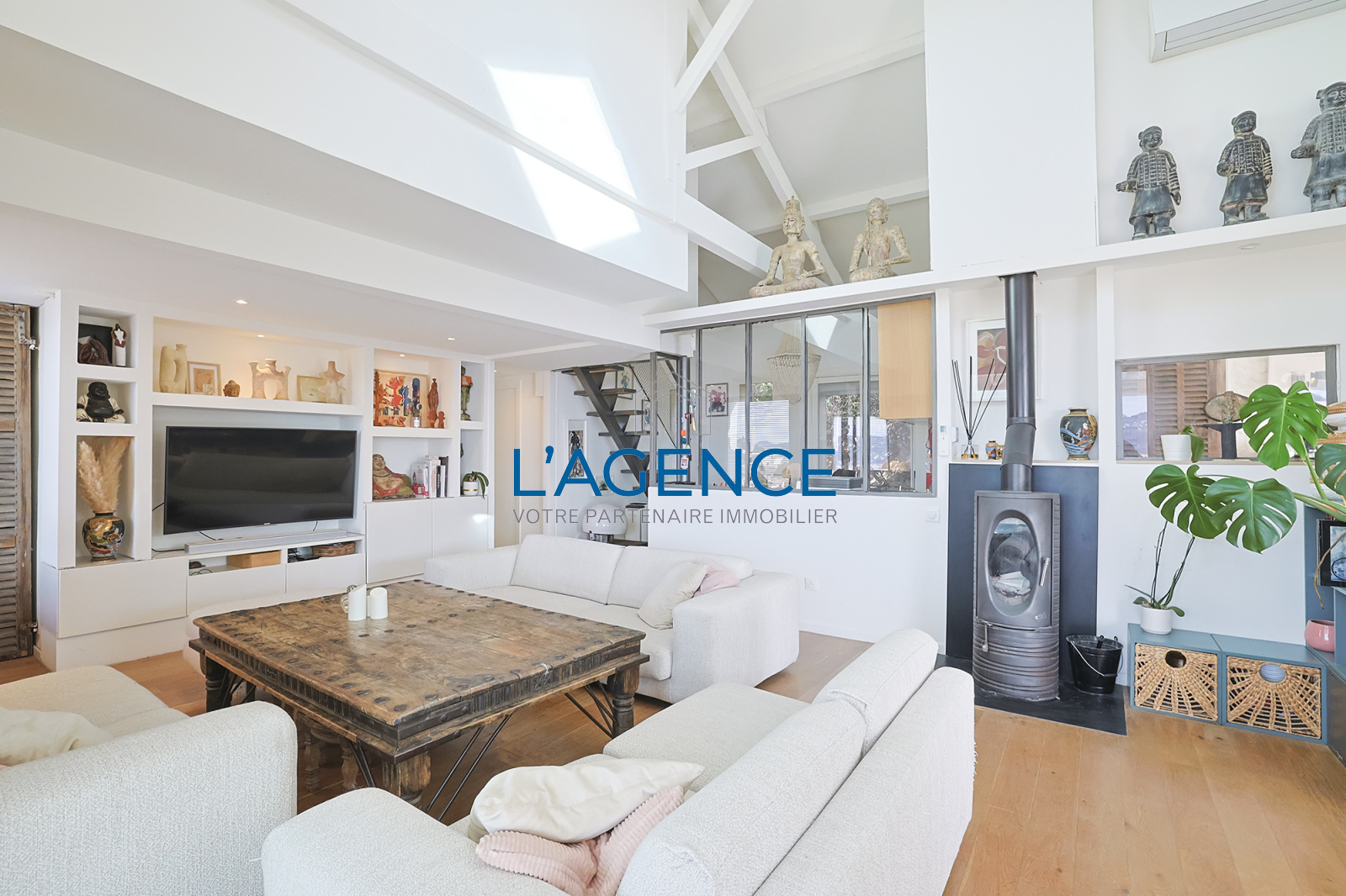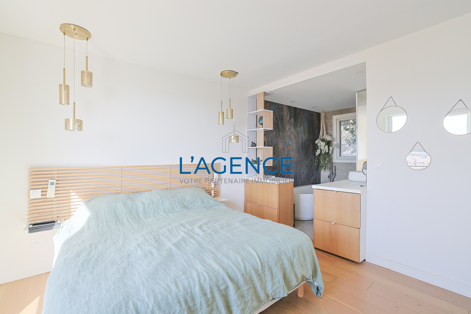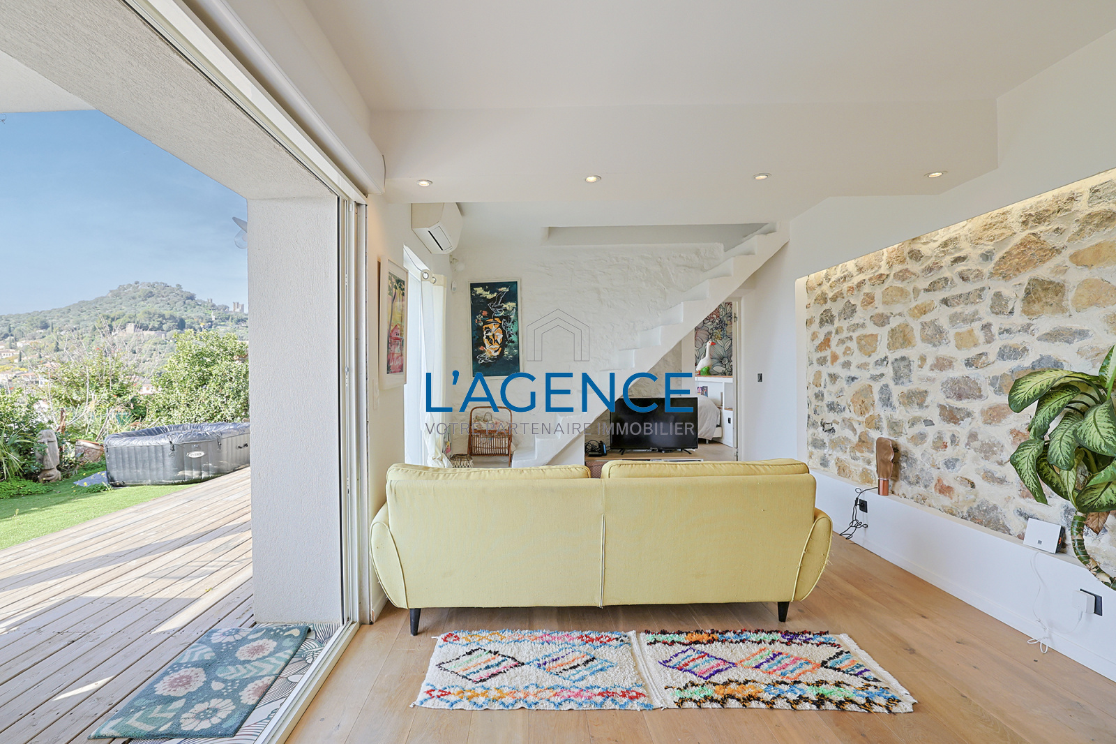 Elle se compose d'un grand salon séjour avec cuisine ouverte de 70m², profitant d'une vue magnifique par les grandes baies vitrées donnant sur les terrasses de 100m² ,la cuisine d'été et la piscine. Sur le même niveau une suite parentale de 25m² avec sa salle de bain et douche, un dressing fonctionnel. A l'étage deux chambres avec chacune sa salle d'eau. En rez de chaussée desservi par l'escalier intérieur, un appartement de 75m² avec son séjour, cuisine, deux belles chambres avec salle de bain et salle d'eau, toutes les pièces sont en portes fenêtres et donnent sur le jardin.