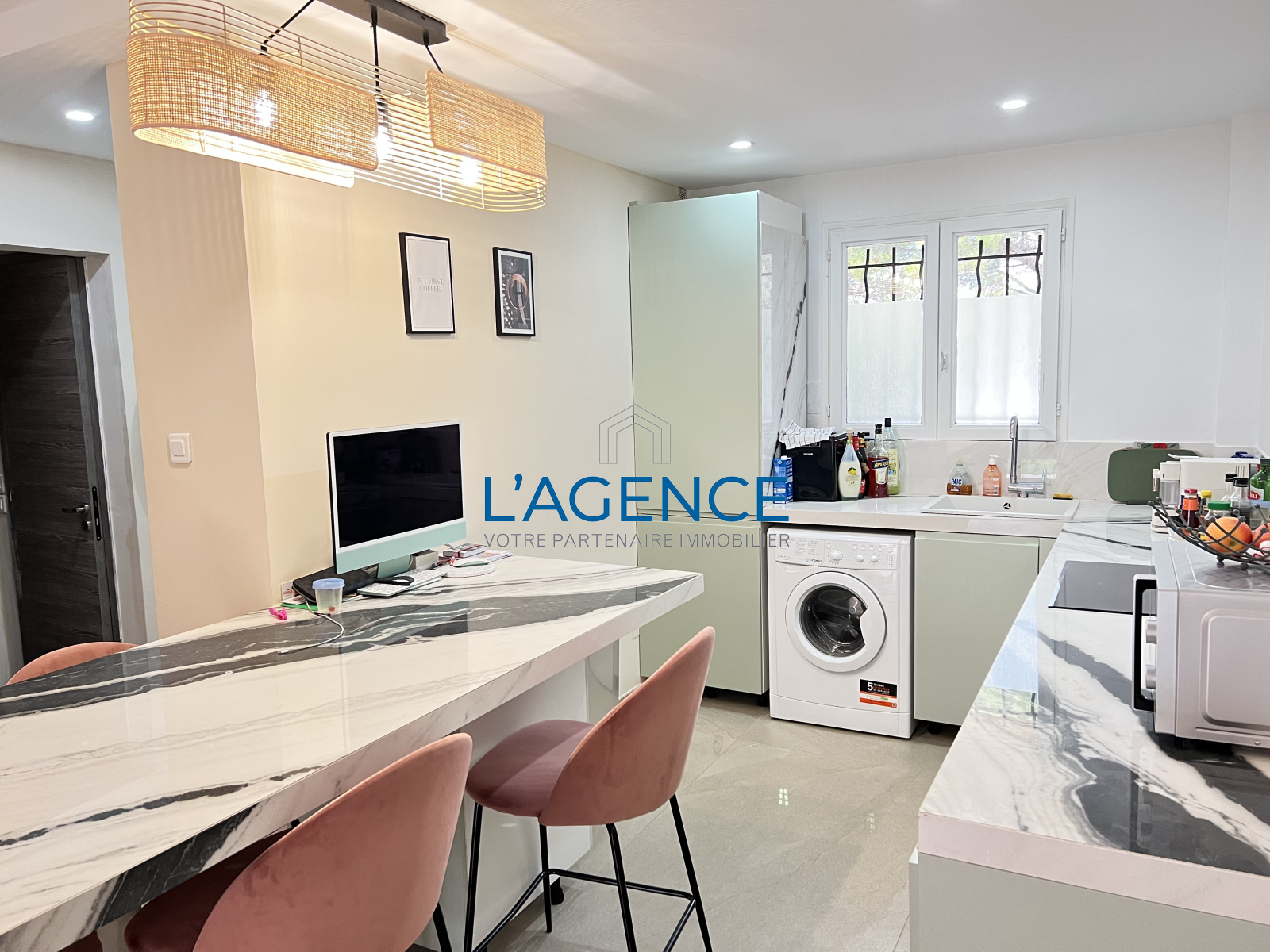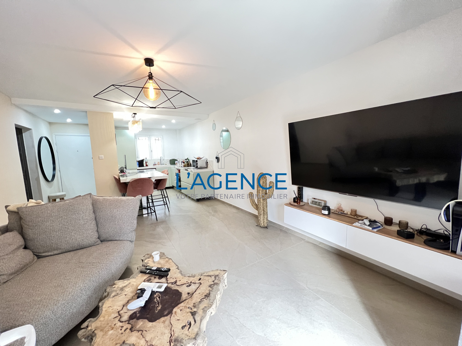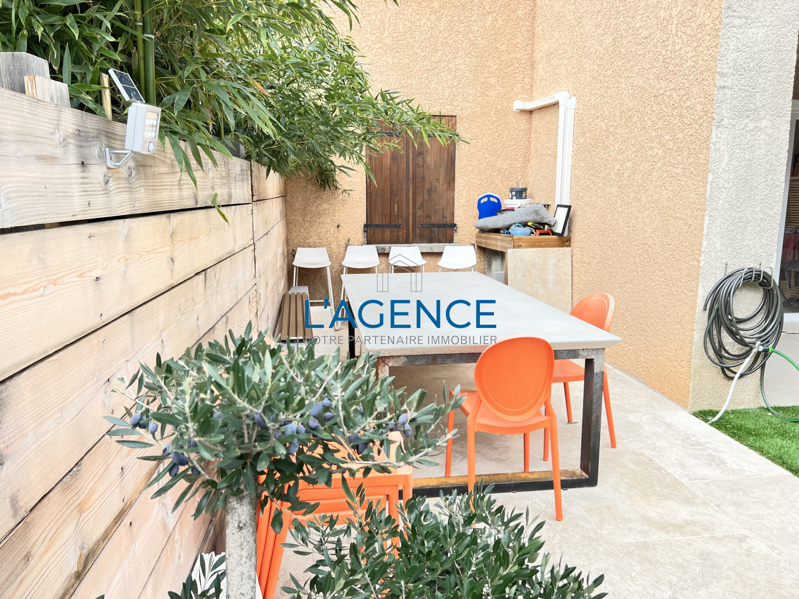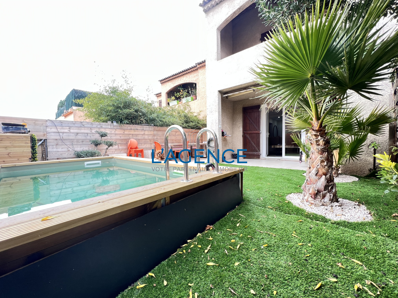 La Farlède (83210)Beau T2 de 49m² en rez de jardin avec piscine et terrasse entièrement refait à neuf au calme avec 2 parking attribués.