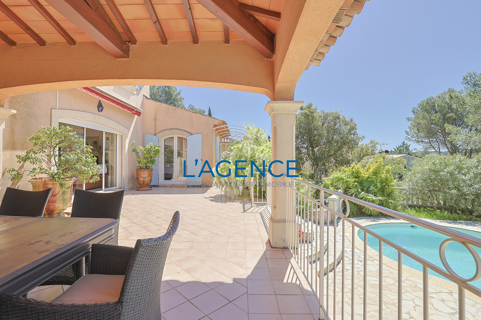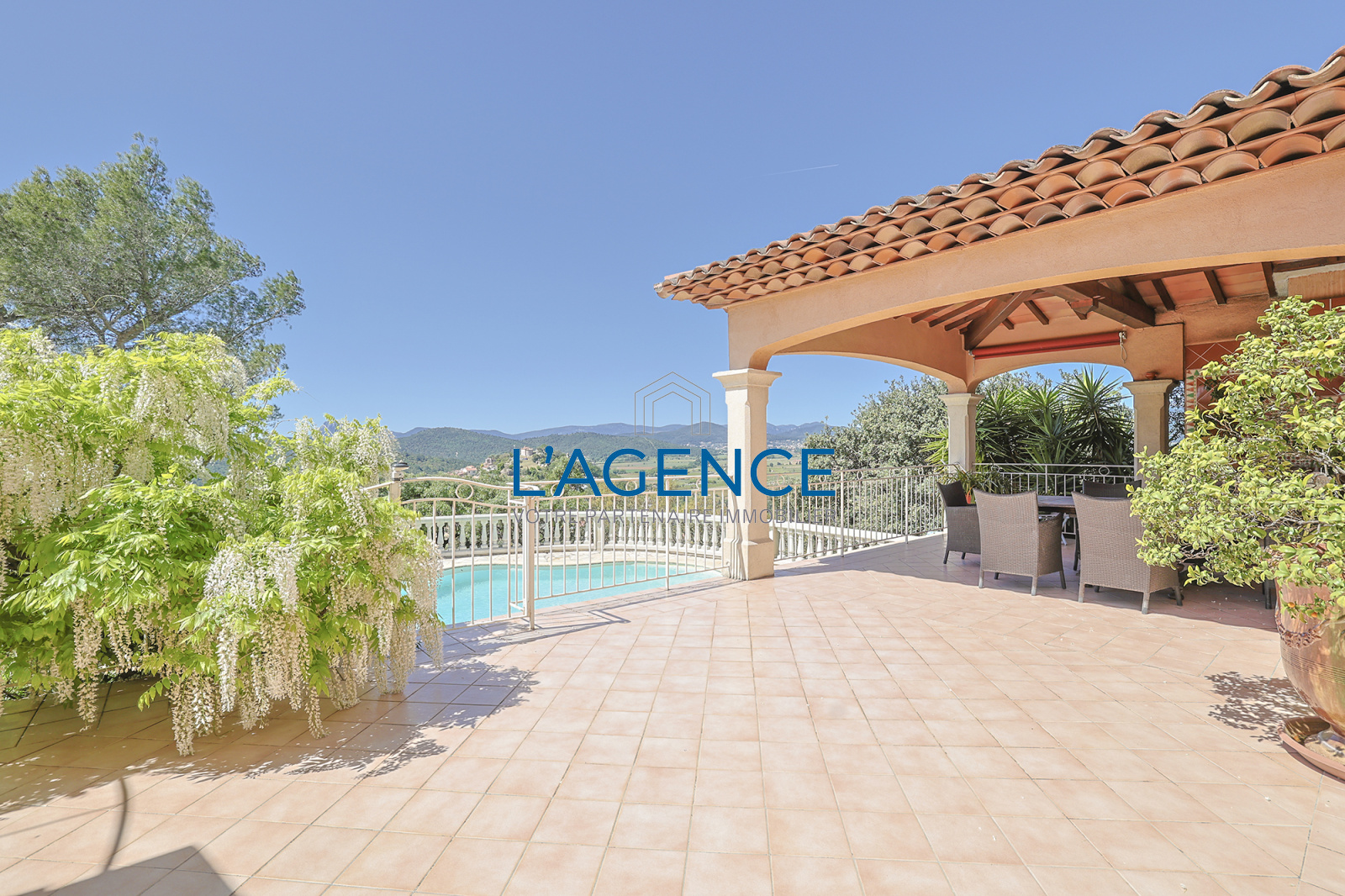 Pierrefeu-du-Var (83390)PIERREFEU DU VAR 20MNS DE HYERES, 15MNS DE TOULON, VILLA OFFRANT UNE TRES BELLE VUE DEGAGEE ET A LA FOIS PROCHE DE TOUTES LES COMMODITES, 194m2 habitables, elle a été batie entièrement en traditionnel. Elle se compose d'une vaste entrée ouvrant sur la pièce de vie avec une trés belle cheminée fournissant à la fois un mode de chauffage complémentaire et un salon des plus réconfortant, salle à manger cuisine donnant sur la terrasse sud couverte ouvrant sur la vue et le coin piscine , suite parentale sur ce niveau avec dressing et salle d'eau, coin bureau, et à l'étage 3 autres chambres, salle d'eau et salle de bain, rangements, garage double 39m2 plus sous sol avec chaufferie, vous serez séduits par cette propriété sans aucun vis a vis, et au calme!