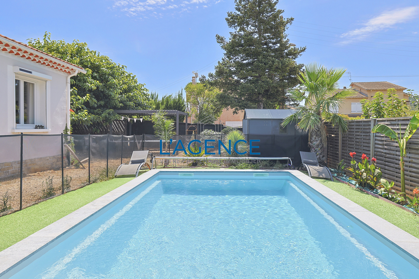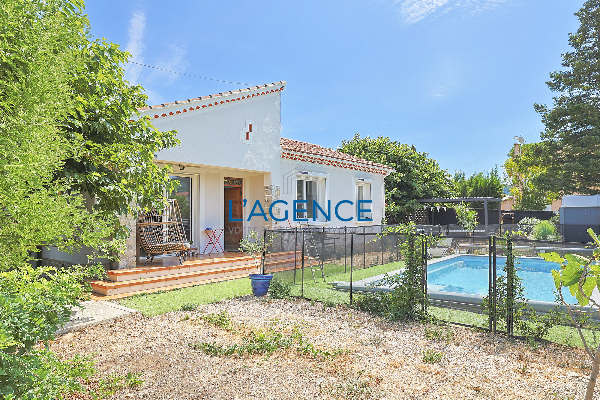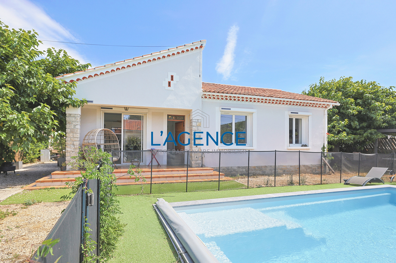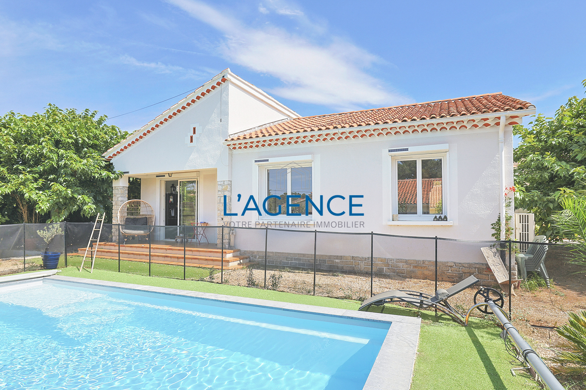 Villa 5 pièces de plain pied de 92 m² avec un terrain de 580m² avec piscine