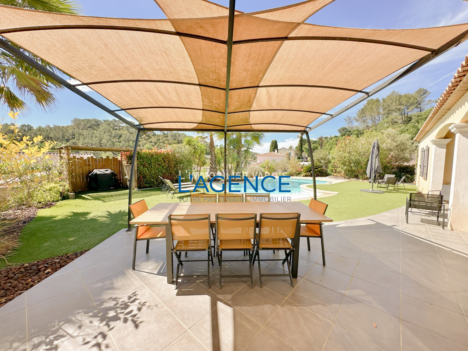 Pierrefeu-du-Var (83390)15-20 MNS DE HYERES, 20MNS DE TOULON, ACCES RAPIDE TOUS LES AXES, Villa en superbe état, de 2009, dans un environnement privilégié, et à la vue dégagée ! A la fois résidentiel et proche de la nature, les commodités accessibles rapidement. La maison offre 167m² hab. environ avec 4 chambres (+ 1 bureau) dont une de plain pied. Vaste pièce à vivre offrant 3 expositions et qui par ses baies à galandage vous conduira à un très bel espace extérieur avec piscine, terrain de pétanque. Cette villa vous séduira par la qualité de tous ces aspects !