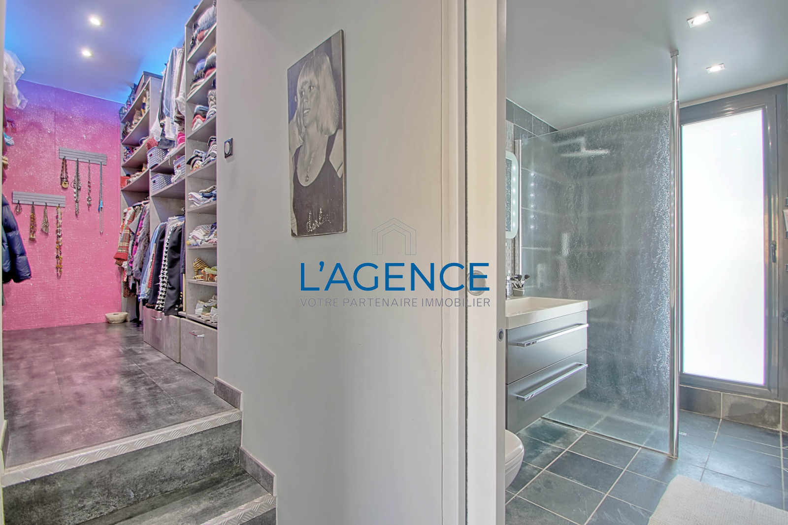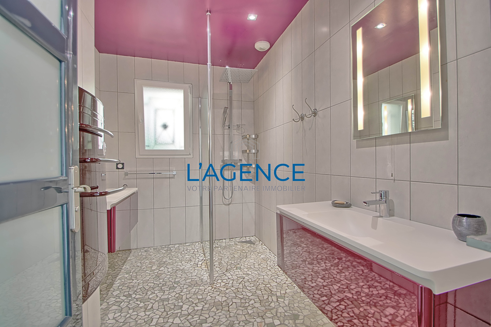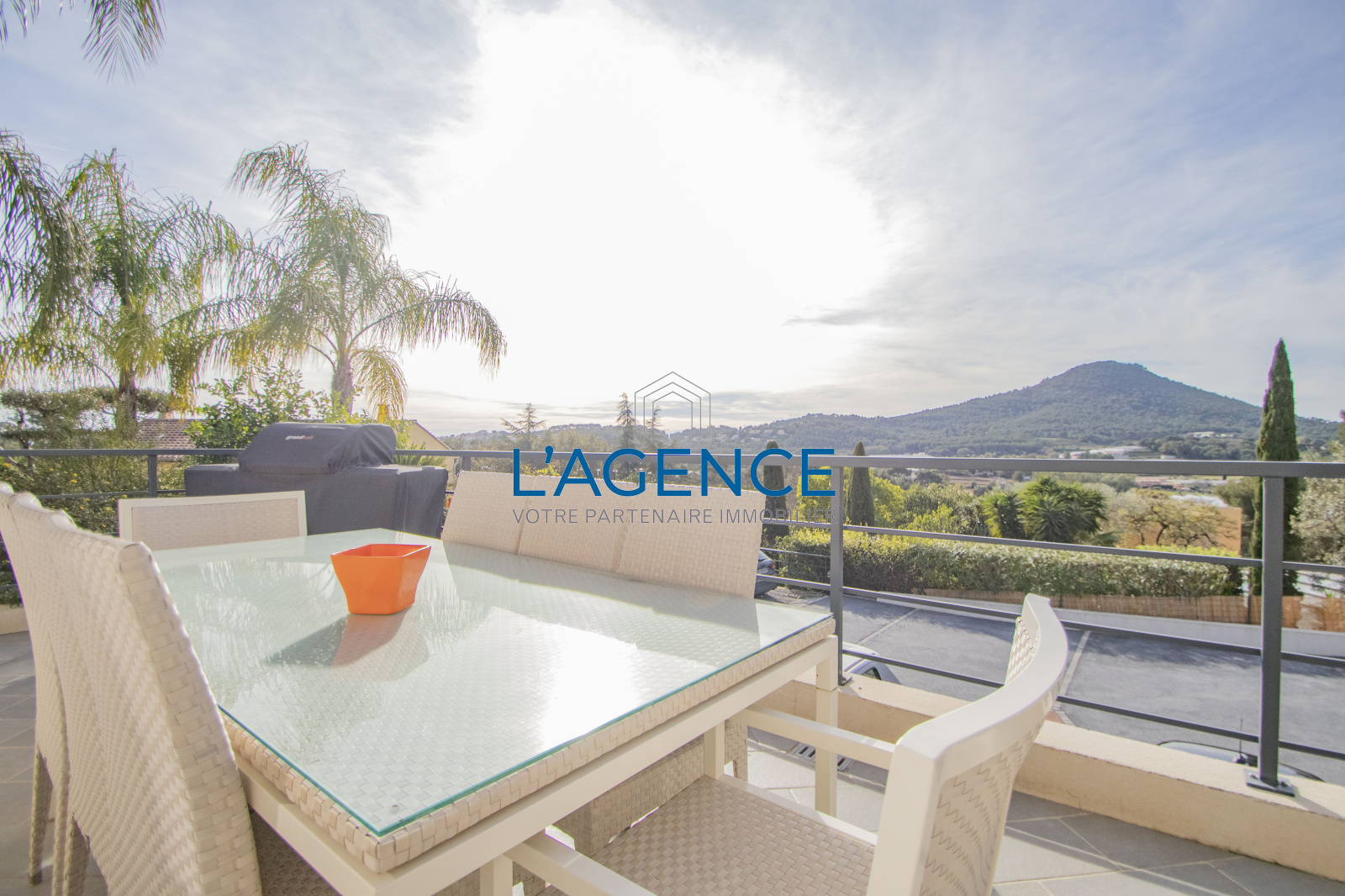 Carqueiranne (83320)Au calme absolu, au fond d'une impasse, très belle villa de 165m², petite vue mer, sur terrain de 1200m², avec piscine de 4mx8m. Elle se compose d'un grand salon séjour avec cuisine tout équipée de 70m² donnant sur la piscine par de grandes baies vitrées à galandage. Quatre chambres dont deux en suite parentale avec salle d'eau, trois wc, une lingerie, un beau sous-sol avec deux garages et des caves. Très belles prestations.