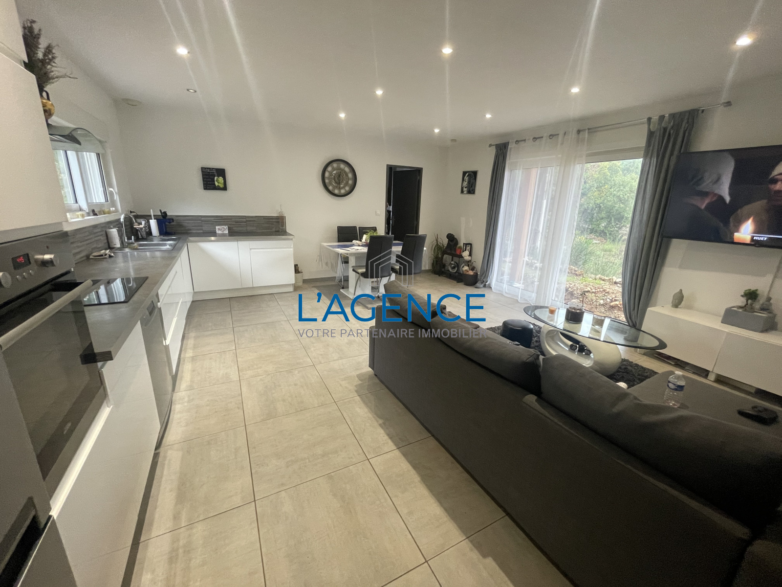 Méounes-lès-Montrieux (83136)Méounes dans un écrin de verdure villa bioclimatique de type 4 de 82m² sur un terrain de 1092m², comprenant : entrée, séjour ouvert sur cuisine donnant accès à une terrasse exposée sud, trois chambres dont une en suite avec salle d'eau, wc séparé, salle d'eau, terrain piscinable, au calme et très lumineux