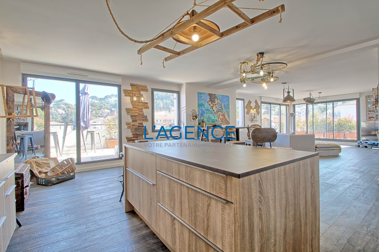 HYERES - Costebelle - Appartement T5 situé au 2e et dernier étage avec ascenseur d'un immeuble de 2016 et à proximité de la gare et d'un arrêt de bus. Offrant une surface de 134 m² dont un lumineux espace séjour et cuisine de 65 m² ouvert sur terrasse plein ciel de 51 m² sans vis à vis et très calme. 4 chambres, dressing, une salle d'eau (normes personnes mobilité réduite), une salle de bains, deux wc. place de parking privatif en sous sol . Tres belles prestations .Garage en sus 20 000€.