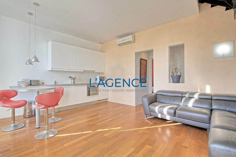 - Hyères centre ville dans petite copropriété de 6 lots, appartement T3/4 de 83 m2 habitables (60 m2 loi carrez) dernier étage exposé sud. Entrée desservant séjour salon avec cuisine et belle hauteur de plafond. Chambre en suite de plain pied de 14 m2 avec dressing et salle d'eau privative. A l'étage chambre de 21 m2 avec vélux, dans l'enfilade une autre chambre en suite avec douche et wc. Aucuns travaux à prévoir, commerces à pied. Une cave collective et une cave privative en rez de chaussée. Visite Virtuelle sur notre site : www.lagencehyeres.com. Charges annuelles 1200€/AN. Honoraires charge vendeur inclus.