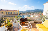 Hyères hyper centre, dans une résidence de standing, Appartement T5 transformé en T4 en dernier étage avec ascenseur. Il se compose d'une belle entrée qui dessert un salon séjour de 39 m² avec plafond cathédrale et dans le prolongement une terrasse à ciel ouvert de 23 m² avec vue dégagée et petite vue mer. Cuisine séparée avec cellier. 3 chambres dont une de plain pied de 21 m² avec balcon, une autre chambre avec placrad de 13 m². Salle d'eau, wc séparé. A l'étage une autre chambre en suite avec rangements et salle d'eau privative .