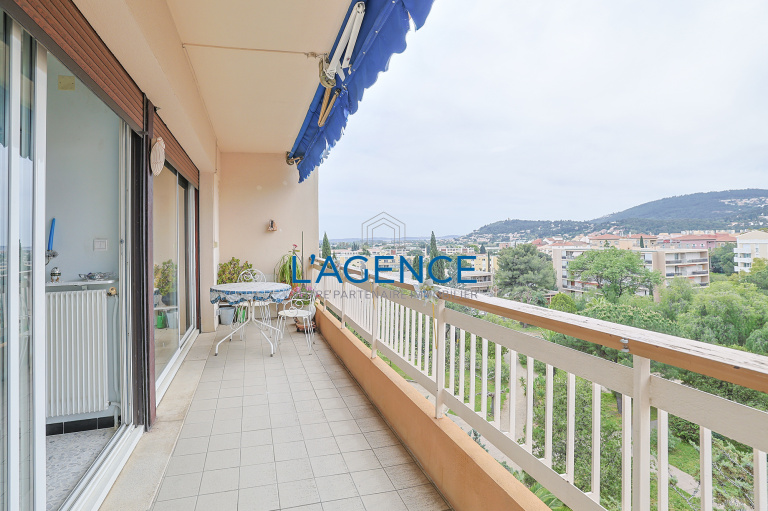 Hyères centre ville, dans une résidence de standing fermée et arborée avec un très grand parc, superbe appartement T3 en dernier étage avec ascenseur offrant une très belle vue dégagée. Il se compose d 'une entrée qui dessert un salon ouvrant sur une terrasse de12 m² avec vue sur le parc. Cuisine séparée et équipée donnant sur un balcon filant avec cellier. Un dégagement avec de nombreux placards dessert deux belles chambres de 11.80 m² et 12 m² avec placard. Salle d'eau, wc séparé.cave. Garage en SUS du prix