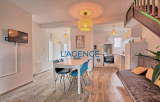 Hyeres quartier port Appartement 3 pièces en duplex de 55m² habitables '48 loi carrez ) au premier et dernier étage dans résidence fermée avec parking privatif .Entrée, wc indépendant , séjour cuisine us ouvrant sur un balcon . A l'étage dégagement , 2 chambres dont une avec mezzanine pouvant accueillir un autre couchage . Capacité 8 personnes . Refait à neuf : electricité , double vitrage , sols . . Exposition sud ouest , au calme . Acces commerces et plage à pied .Aucun travaux à prévoir, appartement entierement renové !!!!