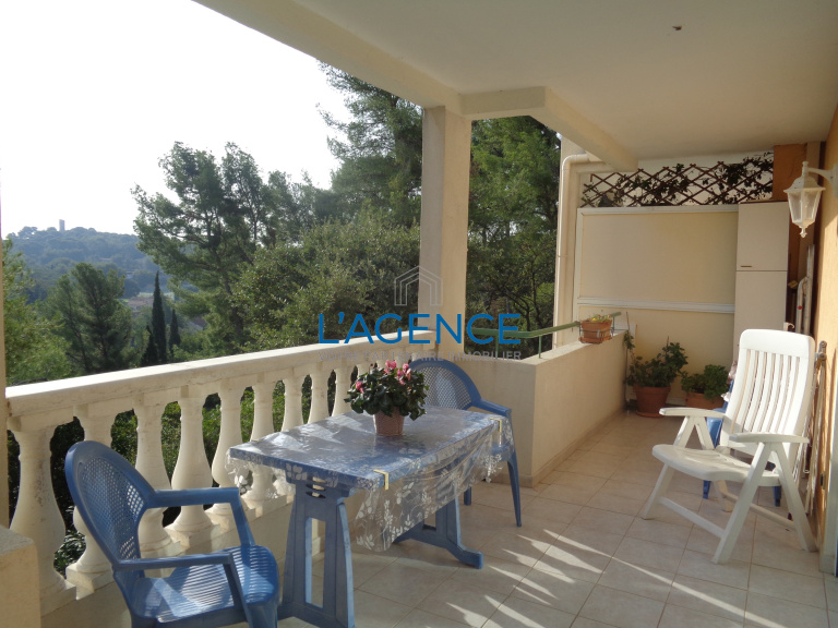 Hyères costebelle dans un environnement privilégié de costebelle au sien d'une résidence fermée de standing au calme non loin des commerces de la gare , appartement T4 de 96 m2 avec ascenseur et vue dégaée allant jusqu'a la mer . Il se compose d'un grand séjour cuisine de 40 m2 ouvrant sur terrasse de 16 m2 . 3 chambres dont une en suite avec salle d'eau et wc . Salle de bains . Cave , Garage double . Volets électrqiues , climatisation réversible , trés belle vue au calme.