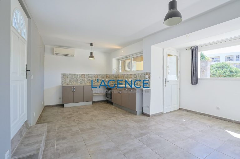 Hyères Ouest proche centre ville et à 500 métres de la fontaine Godillot , Maison de ville de type T3 de 55 m² sur deux niveaux exposée au sud . Séjour salon avec cuisine us ouvrant sur une terrasse de 8 m² . A l'étage, dégagement avec deux chambres dont une avec mezzanine . Salle d'eau wc séparé .