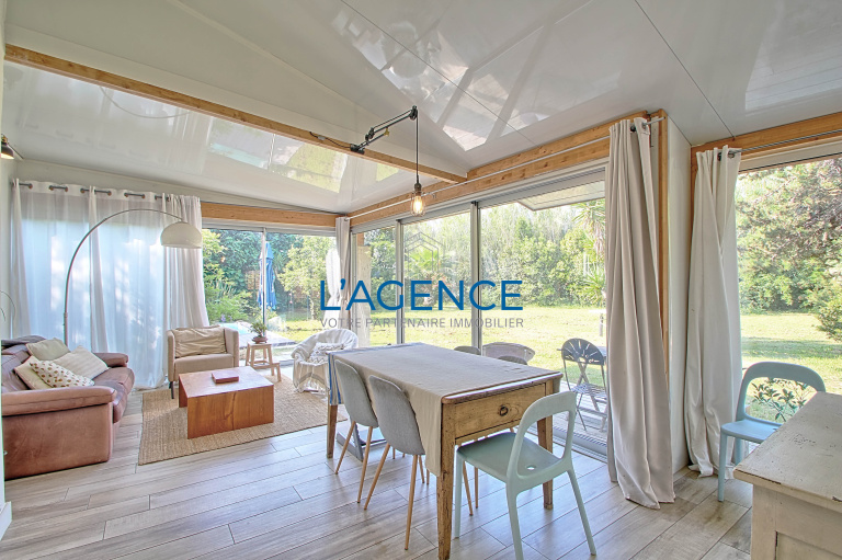 Hyères entre le port et la gare en fond d'impasse superbe villa des années 50 entiérement rénovée de 150 m2 habitables (125 Carrez ) offrant de trés beaux volumes . Elle se compose d 'un bel espace salon de 23 m2 avec ouverture sur un coin repas de 25 m2 donnant sur le jardin. Cuisine séparée. 2 chambres de plain pied dont une en suite avec salle d'eau une autre avec salle de bains et WC . A l'étage 2 chambres en mansarde plus bureau et wc séparé . Garage actuellement transformé en studio . Le jardin de 1821 M2 en zone agricole abrite un atelier deux mobils home et une pisicne 4X2 avec un jardin trés verdoyant . Vous l'aurez compris cette villa atypique offre beaucoup d'espaces et une tres belle rénocation non loin de l'almanarre et du port et des commerces de la gare.