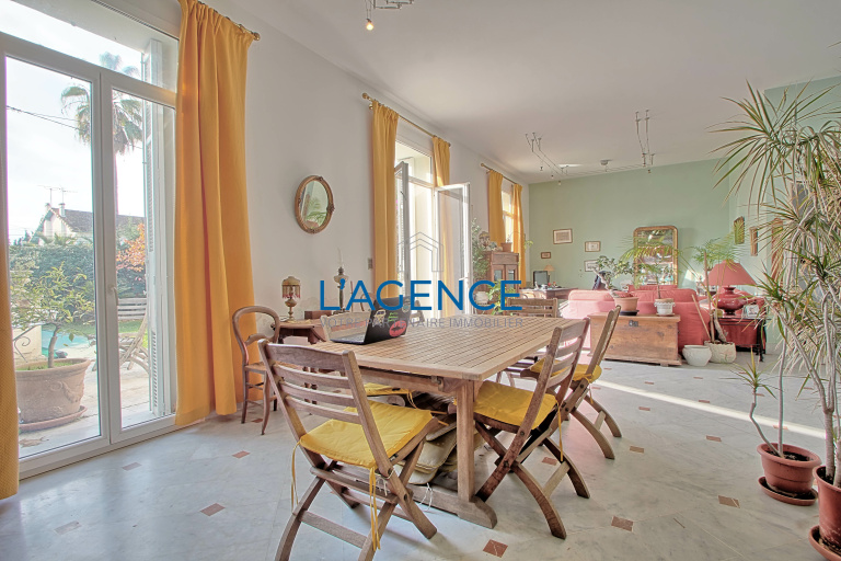 Hyères au centre ville dans un quartier trés recherché, beaucoup de charme pour cette maison de maître année 1913 de 7 pièces principales d'une surface habitable de 180 m²environ, comprenant au rez de chaussée un hall d'entrée, séjour /salon de 62 m², cuisine séparée équipée, une chambre, 2 salles d'eau, 2wc, buanderie. A l'étage:grand dégagement ouvrant sur les 4 chambres, salle de bains, wc, garage de 30 m², piscine, terrain 666 m². Façade et toiture refaites, chaudière gaz de ville récente,double vitrage, isolation.....