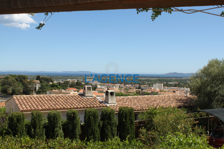 Hyères secteur Noailles villa T6 de 151m² sur deux niveaux composée de deux appartements T4 et T3 . Elle se compose d'un T4 de 110m² comprenant entrée , séjour de 37 m² cuisine séparée ouvrants sur terrasse avec pleine et superbe vue mer dominant la ville . 3 chambres , salle de bains , cellier . Au niveau inférieur Un T3 de 41m² avec double vitrage et séjour ouvrant sur une terrasse . . Jardin arboré de 900 m²