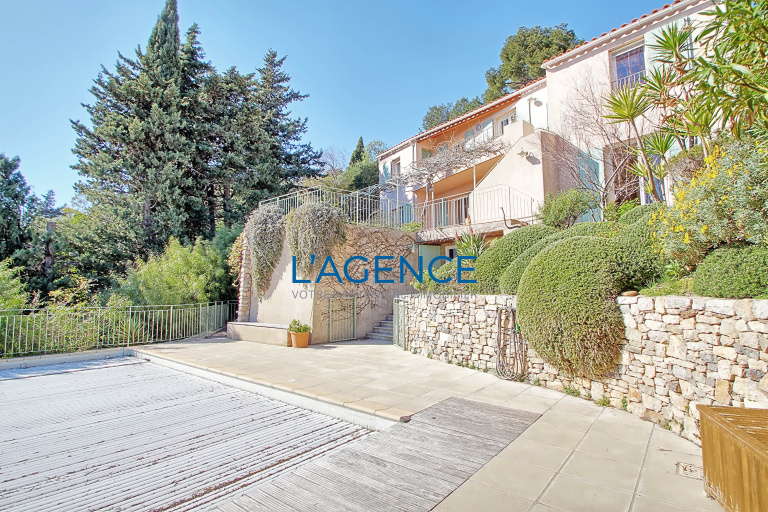 Villa d'architecte de 250 m² surplombant la ville de Hyères offrant une magnifique vue mer non loin de la villa Noailles et du parc Saint Bernard . Cette villa offre de beaux volumes et une vue mer de chaques pièces . Son vaste salon séjour de 56 m² ouvre sur une terrasse exposée au sud avec terrasse en bois et jardin arboré . 6 chambres dont 2 en suite de 20 m² avec une chambre de plain pied . Cette villa bénéficie d'une vue exceptionnelle et d'un jardin arboré entiérement clos sans aucuns vis à vis . Un atelier et une grande cave compléte l'ensemble de la villa . Vous pourrez allez au centre ville à pieds ou bien mettre votre voiture dans un garage avec voutes et deux places de parkings vous permettront de recevoir à votre aise . Cette villa de part sa situation et sa vue en font sans aucun doute une villa exceptionelle au coeur de la cité des palmiers .