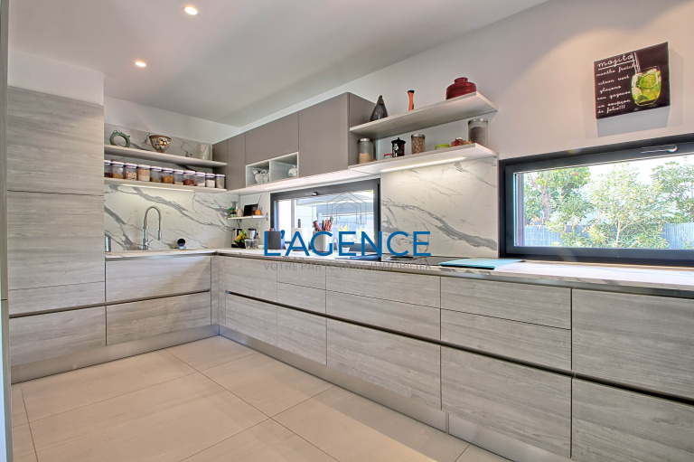 - Hyères Centre ville , villa de plain pied de 125 m2 entiérement rénovée exposée au sud avec jardin arboré de 604 m2 avec piscine . Cette villa se compose de d'une entrée avec salon séjour de 47 m2 ouvrant sur un jardin au calme sans vis à vis avec piscine et terrasses . Cuisine séparée entièrement aménagée de 15 m2 avec dans le prolongement un cellier de 7 M2 . 3 chambres dont deux de 17 et 14m2 avec dressing et placards . Salle d'eau , wc séparé . Le jardin est entiérement arboré , Carport pour deux voitures et deux abris complètent l'ensemble pour le rangement . Cette villa vous séduira par ses prestations : climatisation gainé, volets roulants , tres beaux volumes. Centre ville à pieds. Possibilité de réhausser d'un étage . Trés rare sur le marché .