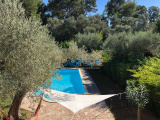 Exposition plein sud sur la piscine de 9x4.5m et le jardin arboré d'oliviers centenaires.