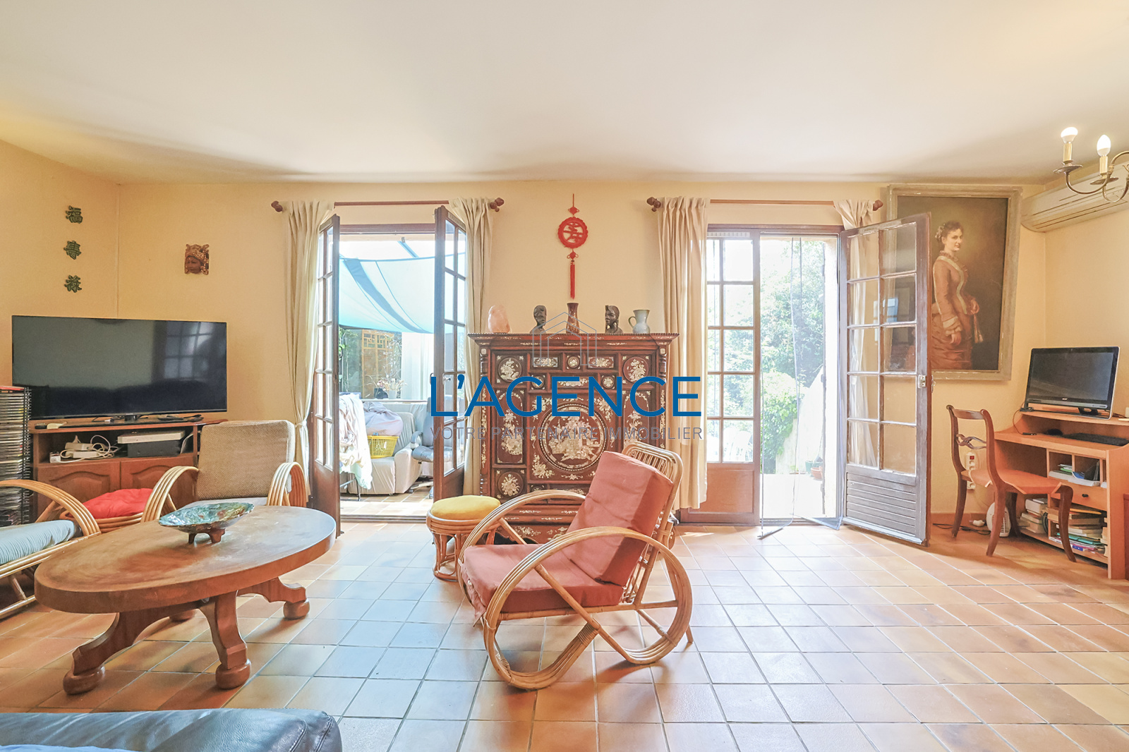 A l'étage 4 chambres de belle taille, une salle de bain, WC séparé. Salon et chambres au Sud climatisé.