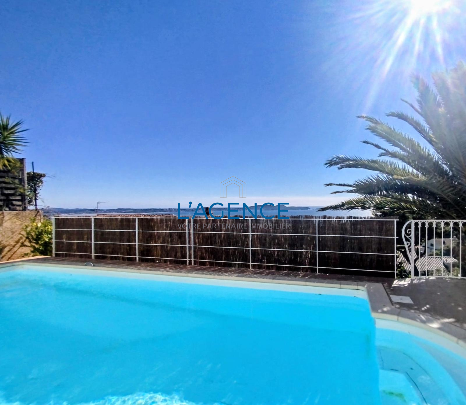 Hyères (83400)HYERES, Située à proximité de la mer et des plages de l'almanarre, offrant une superbe vue mer rapprochée, cette maison de 196m2 (loi carrez) vous séduira par sa rénovation et ses pièces de vie ouvertes sur la mer! Idéale pour un pieds à terre au calme, ici tout invite à la détente! Séjour Salon Cuisine neuve aménagée et équipée prête à recevoir vos repas conviviaux, ouvrant directement sur la terrasse au sud. Une suite parentale sur ce même niveau avec une salle d'eau qui offre la vue mer en miroir! Puis au niveau inférieur, 3 autres chambres dont une suite, qui ouvrent sur la terrasse côté piscine et jardin. Le plus: une pièce atelier pouvant être envisagée en salle de jeux, salle vidéo ou de sport ...Garage et Parking Privé.