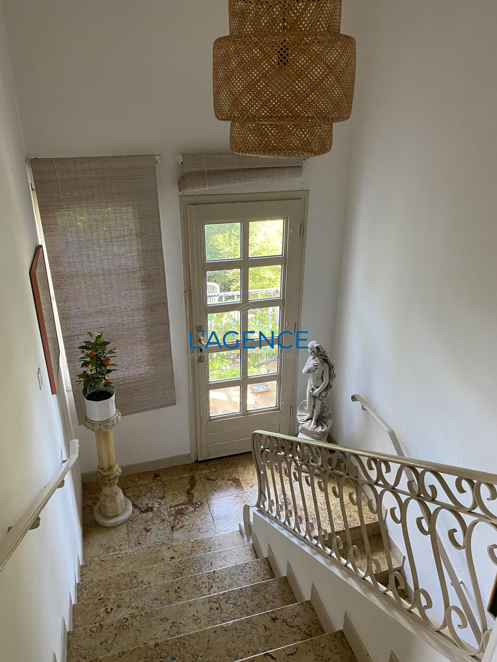 Hyères (83400)Exceptionnel, charmante villa des années 60 en très bon état à quelques pas de la mer, au calme absolu et dans un jardin arboré remarquable qui lui permet de n'avoir aucun vis à vis. Elle se compose d'un grand séjour repas avec cuisine séparée, un salon lumineux donnant sur le jardin, une chambre de plain pied, une salle d'eau. A l'étage, une grande pièce de 27 m² pouvant être séparée en deux chambres, et deux chambres au calme sur le jardin, une salle de bain avec WC. Chauffage gaz de ville.