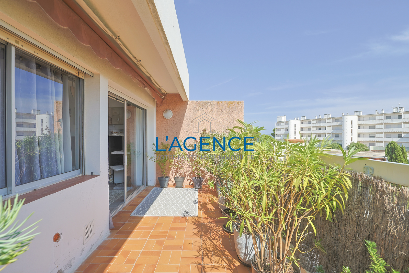 Hyères (83400)Hyères dans une résidence fermée et sécurisée , Apparrement T1 de 30 m2 en dernier étage d'une petite copropriété avec terrasse de 14 m2 à ciel ouvert et un acces à la mer à pieds .