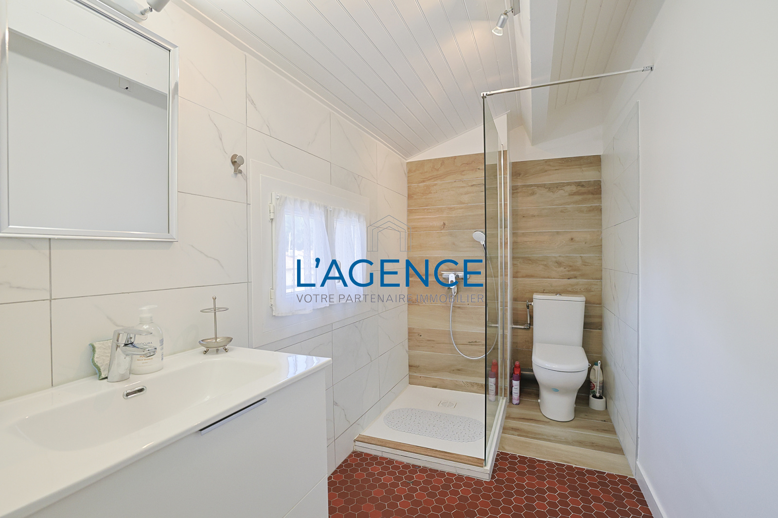 Il se compose d'une entrée, cuisine séparée, beau séjour donnant sur la terrasse. A l'étage, une chambre de 15m² divisible donnant sur la 2e terrasse, une salle d'eau neuve.