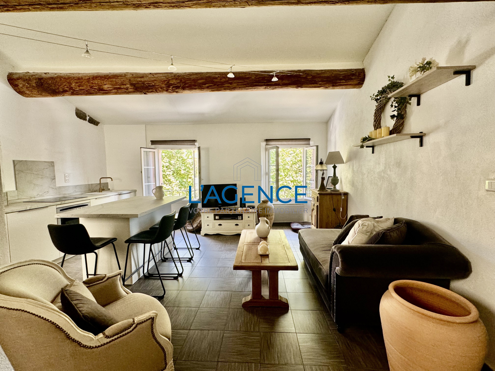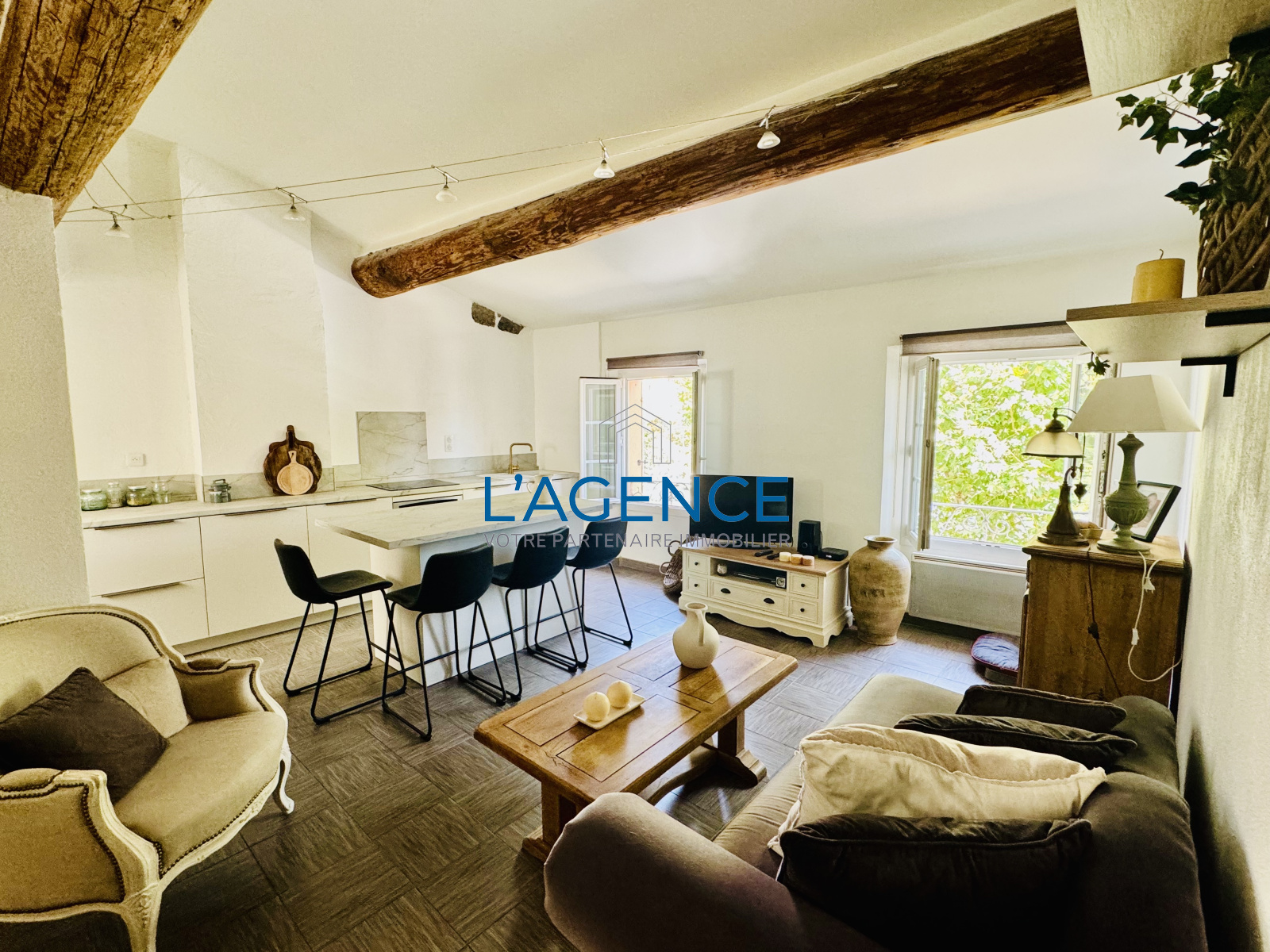 Hyères (83400)HYERES, hyper-centre, découvrez ce charmant appartement T2 entièrement rénové avec goût, situé en dernier étage. D'une surface de 55m², il se compose d'une entrée ouvrant sur une belle pièce de vie avec cuisine US entièrement aménagée et équipée + coin buanderie, un dégagement desservant une chambre, une salle d'eau avec WC. Pour les amoureux de l'ancien, vous serez séduits par son cachet, ses poutres apparentes et murs en pierre. Petite copropriété de 6 lots principaux - Faibles charges : 445 euros / an. Idéal premier achat ou investisseur ! A visiter rapidement !
