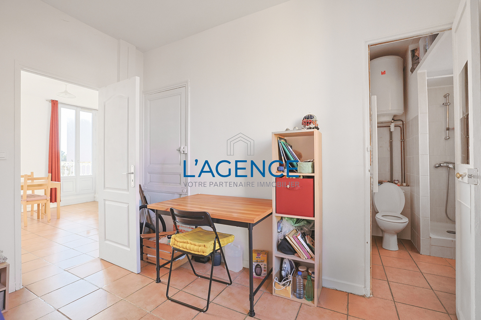 Cet appartement bénéficie d'une exposition plein sud sans aucun vis à vis offrant une atmosphère paisible en plein centre ville . Il se compose d 'un salon séjour avec cuisine us donnnat sur un balcon . Chambre séparée avec salle d'eau et wc . Il est actuellement loué 588€ /mois à une locataire à jour de ses loyers . Il bénéficie du double vitrage mais surtout de combles qui pourront etre aménagées ultérieurement permettant d'augmenter la surface .
