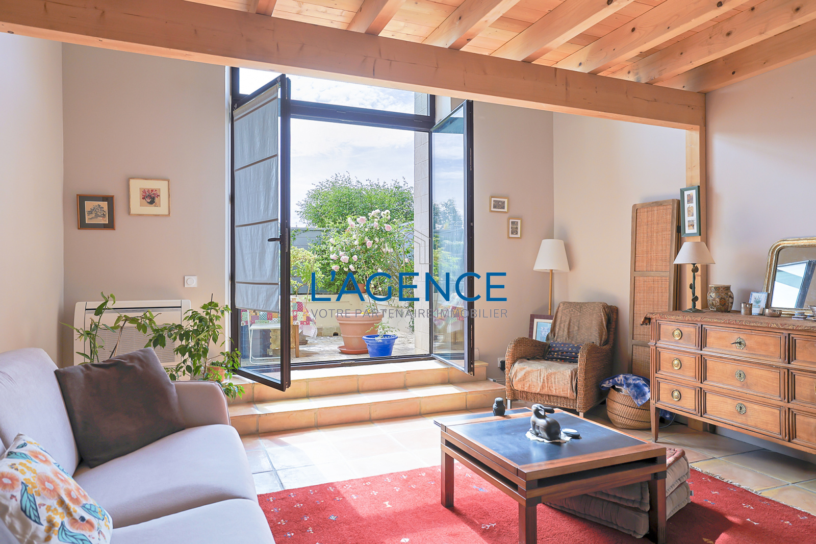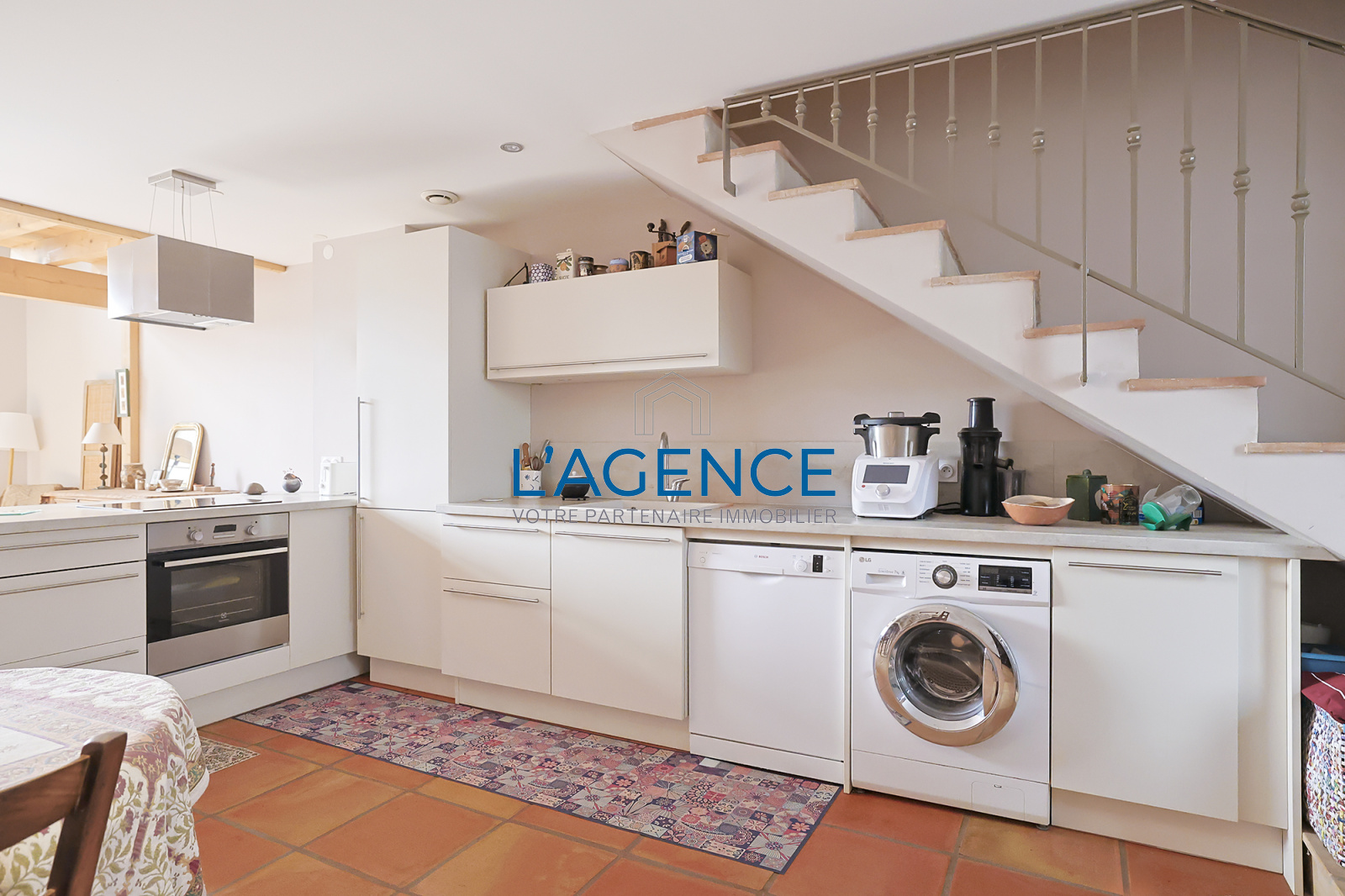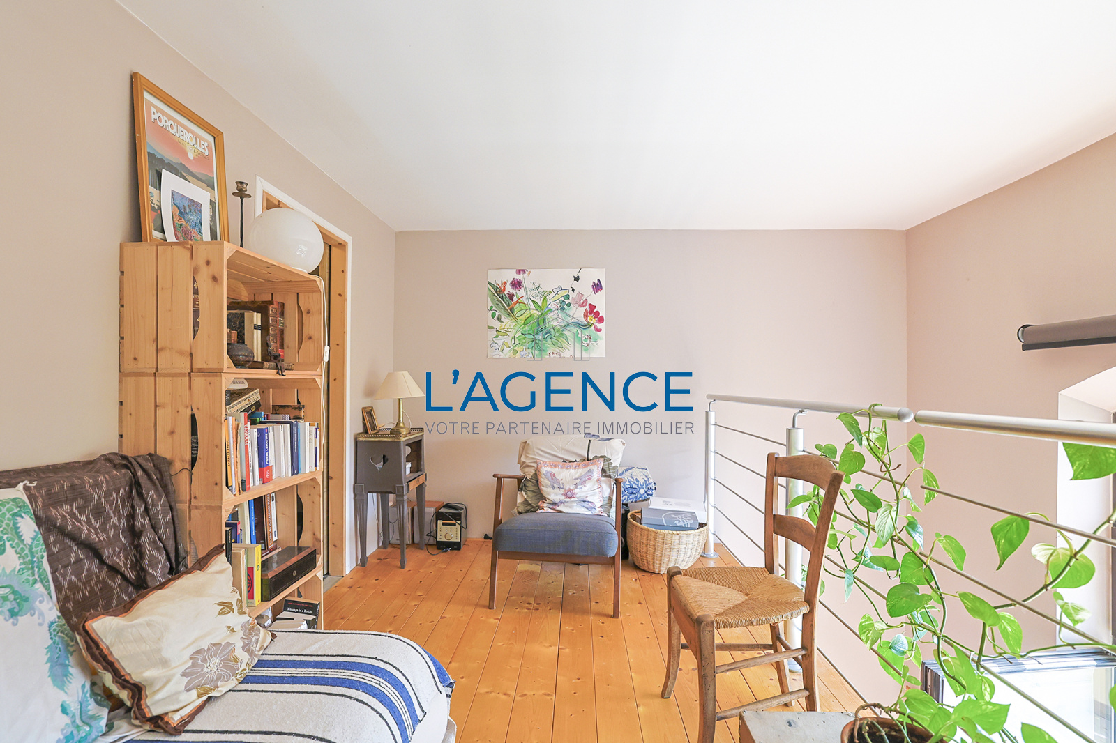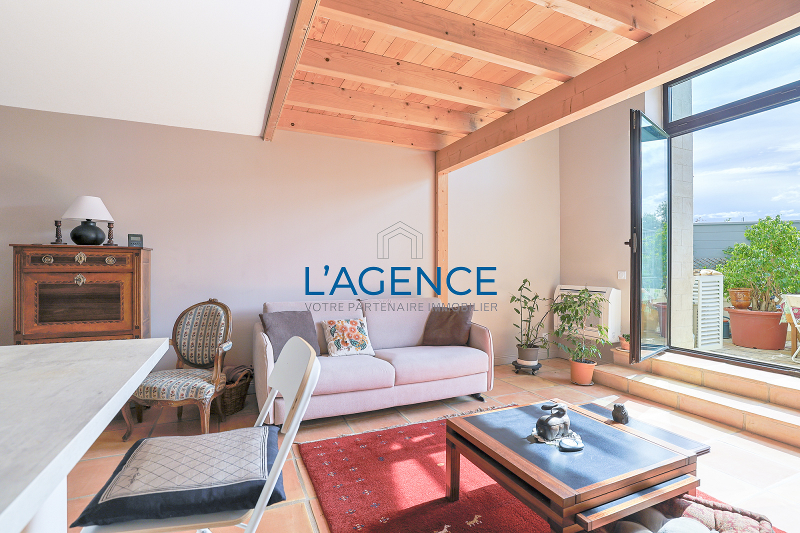 Il se compose d'un espace salon séjour de 41 m² avec cuisine aménagée et équipée ouvrant sur une belle terrasse à ciel ouvert de 6 m² . Une grande baie vitrée permet de faire entret le soleil au milieu de la pièce . A l'étage un dégagement ouvre sur une chambre de 16 m² avec placard et salle d'eau et dans le prolongement une chambre d'appoint de 9 m² avec vide sur séjour . Une place de parking privative compléte l'ensemble .