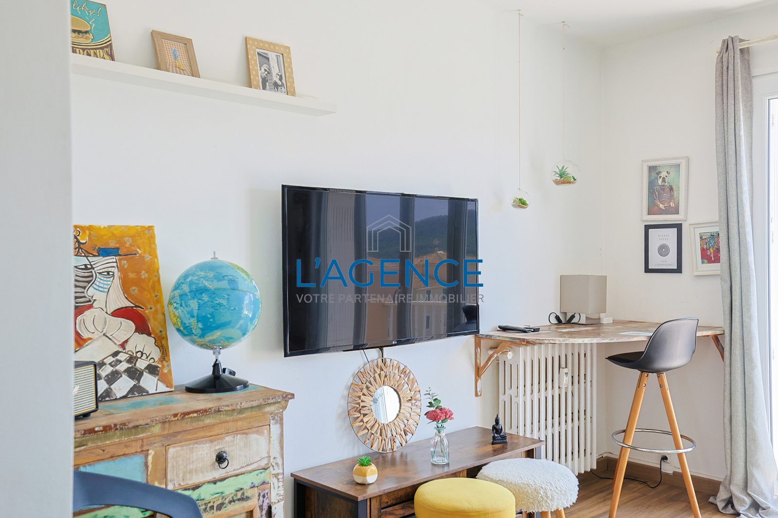 Il se compose d'une entrée avec placard qui dessert un salon séjour ouvrant sur un balcon avec une vue dégagée. Cuisine semi-ouverte aménagée et équipée donnnat sur une loggia avec vue sur les collines. 2 chambres dont une avec grand placard, salle de bains, WC séparé. Appartement sans travaux. Façade faite il y a 4 ans, place de parking libre dans la copropriété, cave. Idéalement situé grâce à son accès direct aux commerces, écoles et autoroute.