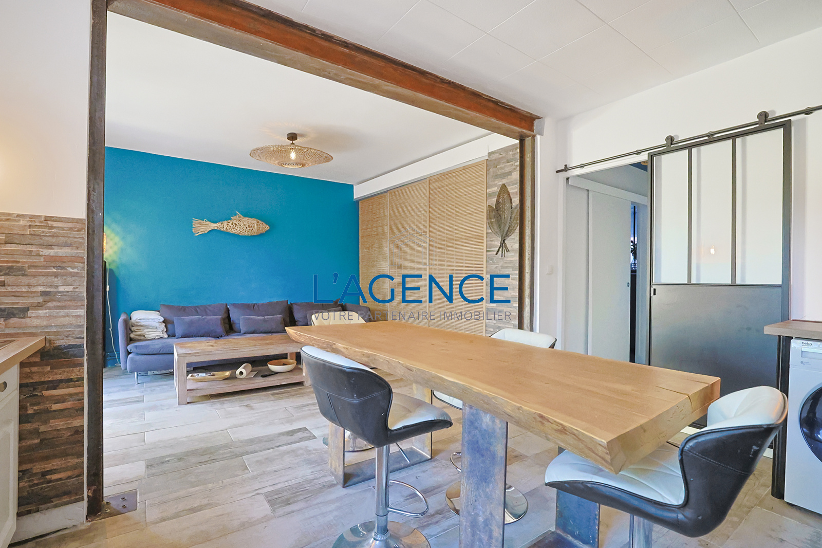 Cet appartement T3 vous séduira de part ses prestations et sa terrasse ainsi que sa proximité de la mer à pieds . Il se compose d 'un salon séjour de 29 m² avec une cuisine entiérement équipée et améngée ouvrant sur une terrasse de 34 m² avec un espace barbecue et point d'eau . Dégagement avec deux belles chambres de 12 et 15 m² donnant sur un balcon , espace bureau . Salle d'eau wc séparé .