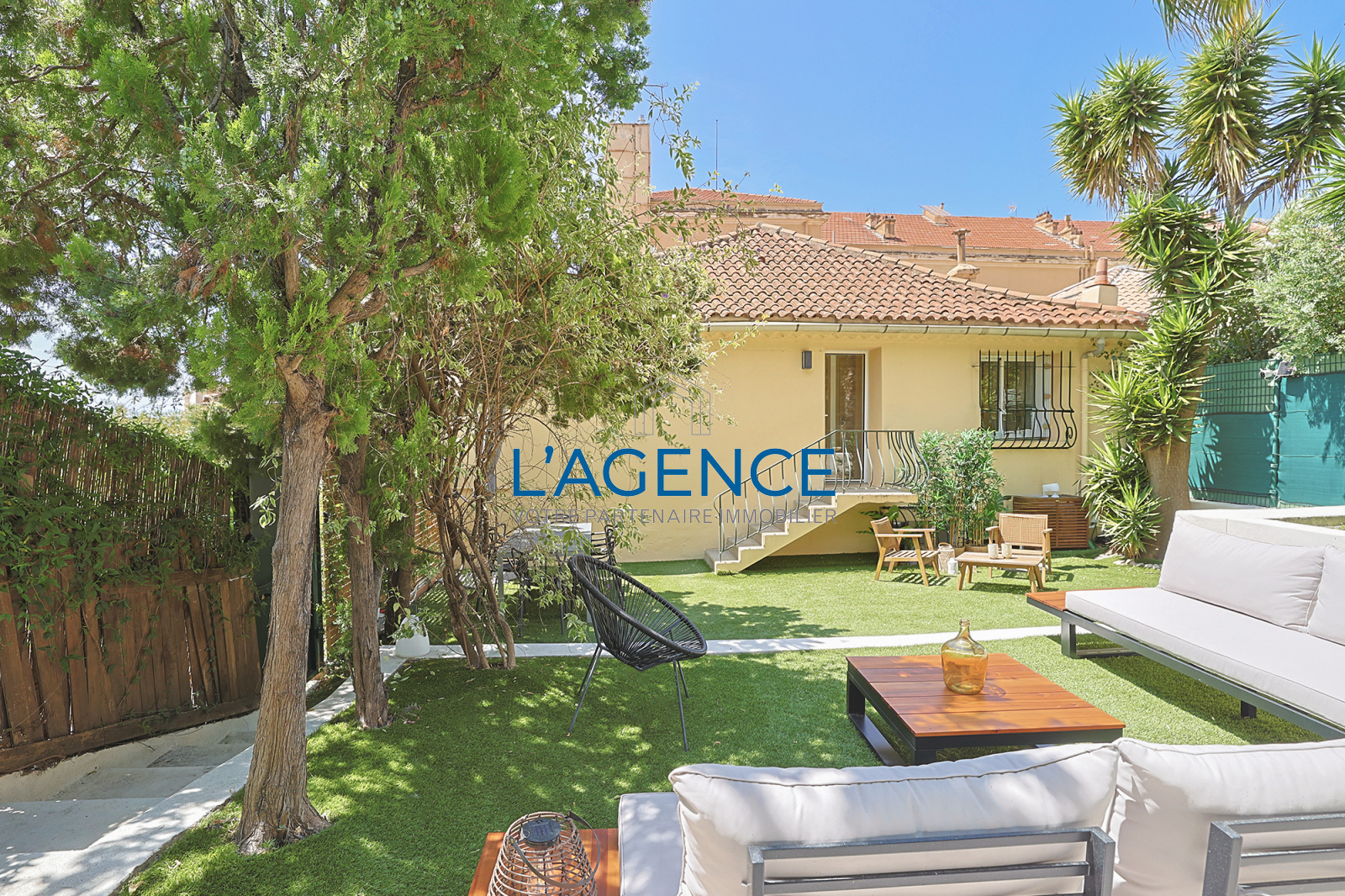 Hyères (83400)Hyères centre ville, à l'abri des regards indiscrets, dans un secteur résidentiel de Hyères chargé d'histoire, Villa de type T2/3 intégralement rénovée par un architecte, avec de superbes prestations et un jardin de 115m² sans vis à vis.