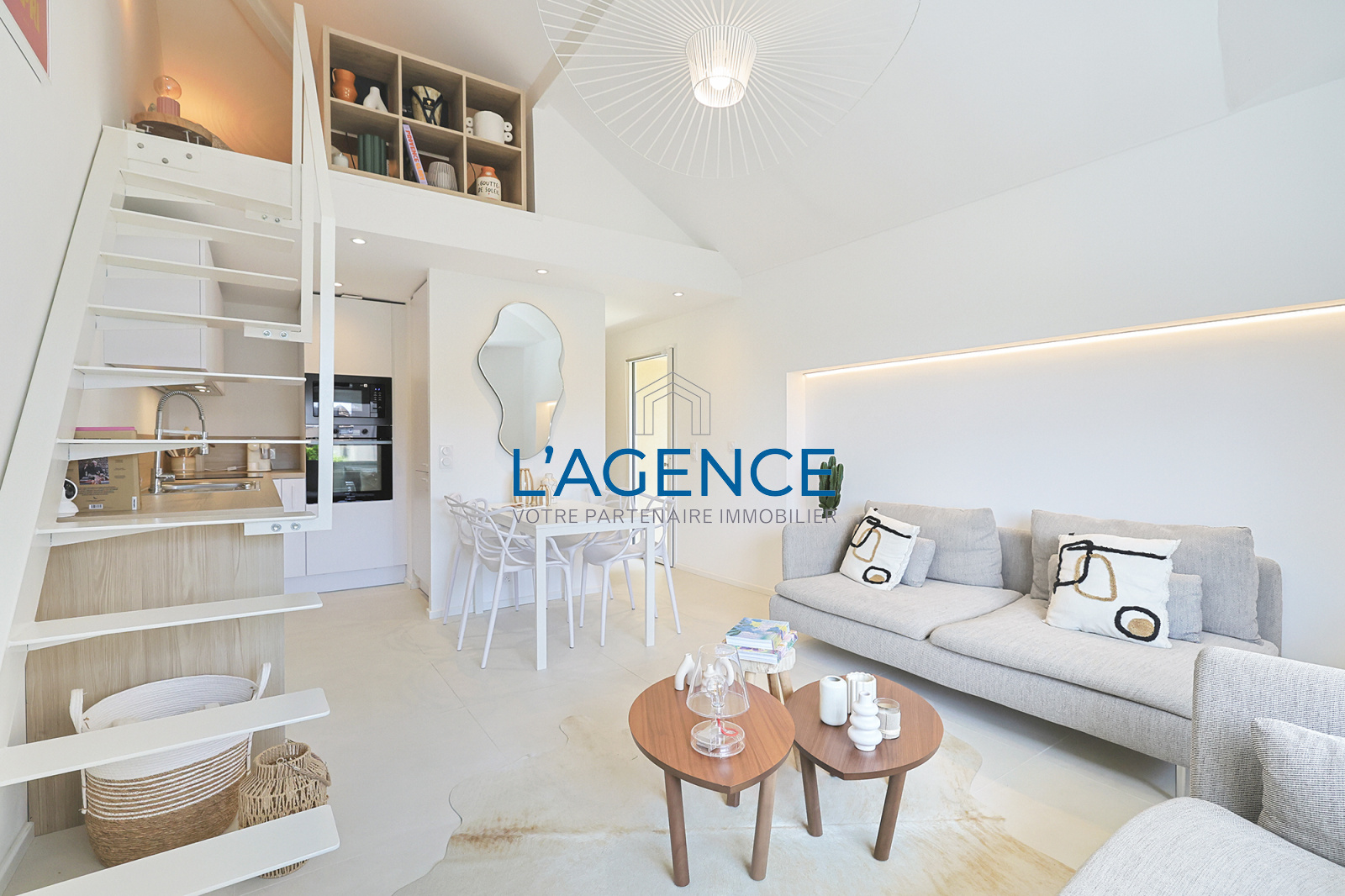 Dès l'entrée vous accéderez à un espace salon séjour de 21 m² avec, dans le prolongement, une cuisine entièrement équipée et aménagée. L'espace de vie offre de très beaux volumes et en prime une vue mer. Chambre en mezzanine, grand dressing de 10 m² avec salle d'eau privative (poss de 2ème chambre) . WC séparé.