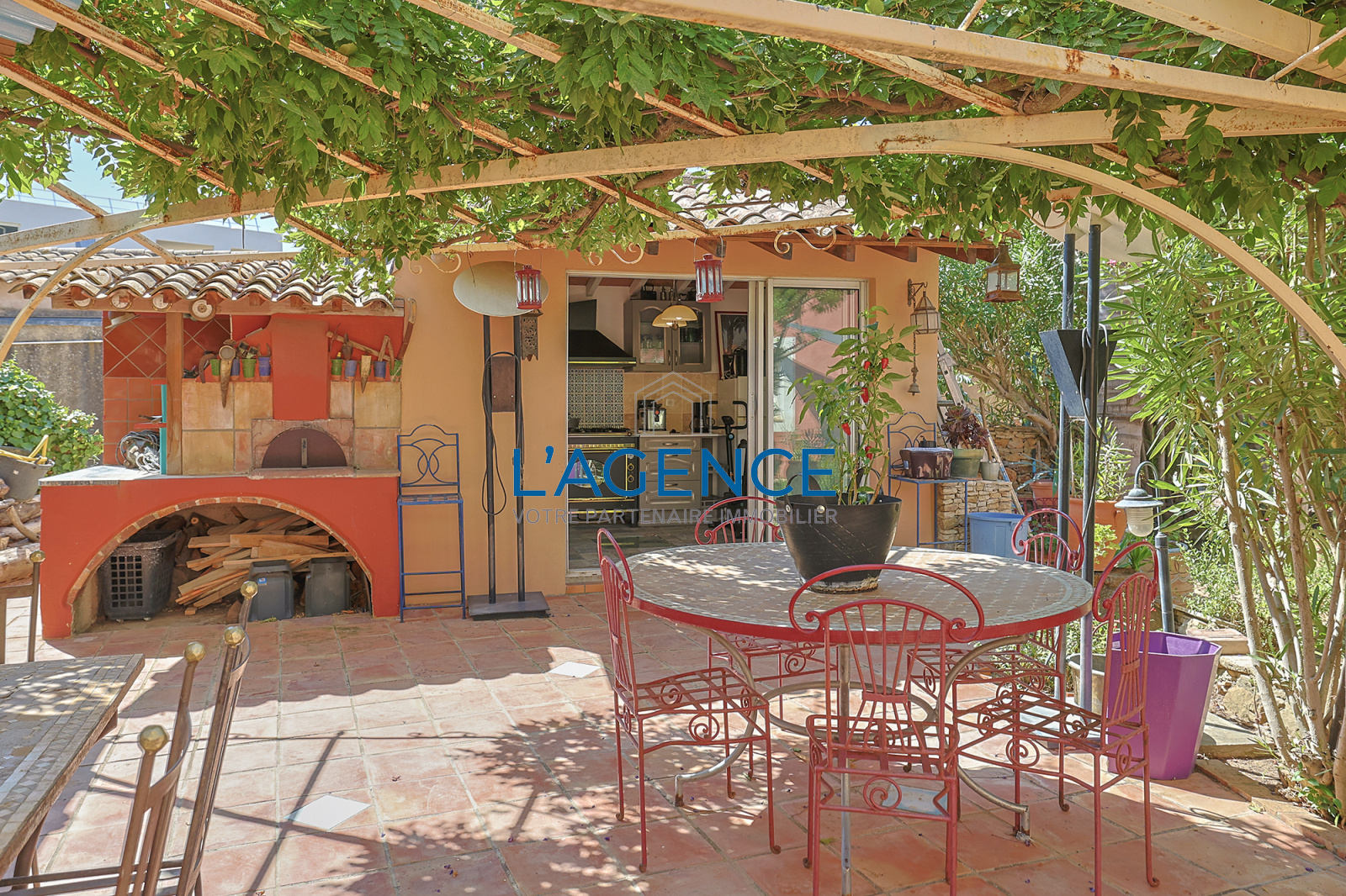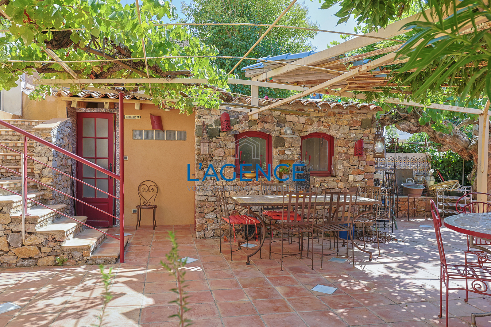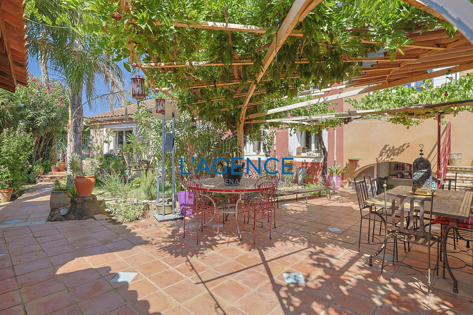 L'espace jardin de 293 m² est entièrement desservi par l'ensemble des pièces à vivre et propose une belle terrasse, de nombreux espaces pour déjeuner. Vous y trouverez aussi une belle cuisine d'été, un coin nuit avec salle d'eau et WC. La maison bénficie de nombreux rangements et pour couronner le tout, un espace hammam.
