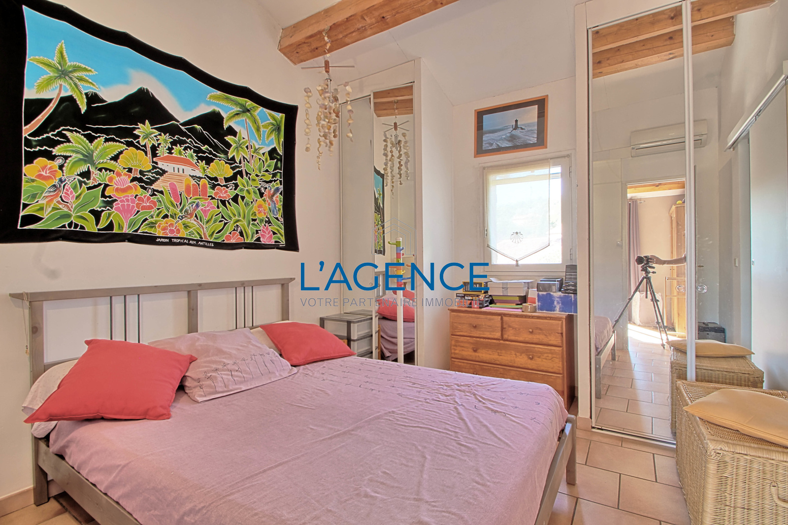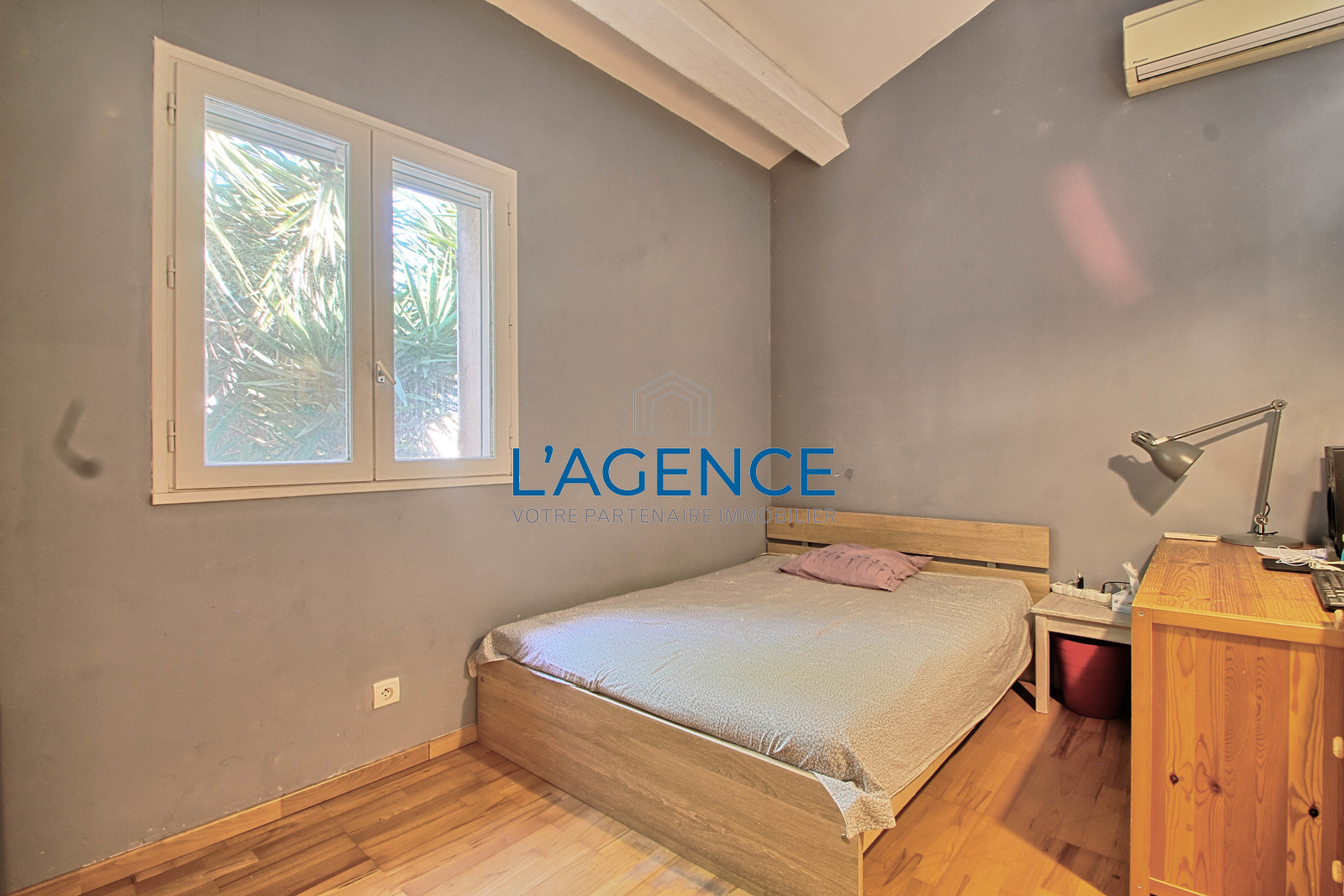 Hyères (83400)Exceptionnel, proche des plages de l'Almanarre, au calme dans une impasse, villa sur un terrain plat et arboré de 700m2 avec piscine de 4x8. Spacieux séjour de 43m2 avec cheminée insert et plafond rampant, cuisine équipée avec cellier et garage, chambre de plain pied avec dressing et salle de bain. A l'étage un bureau en mansarde de 12.5m2, trois chambres dont une donnant sur un solarium et deux salles d'eau. Villa climatisée, menuiseries pvc récentes. Cave en sous sol de 21m2 .Garage de 17m2.