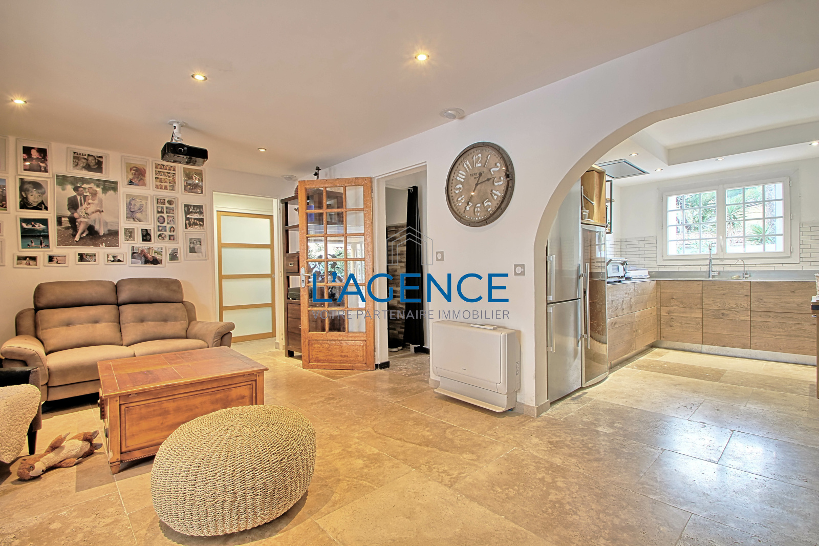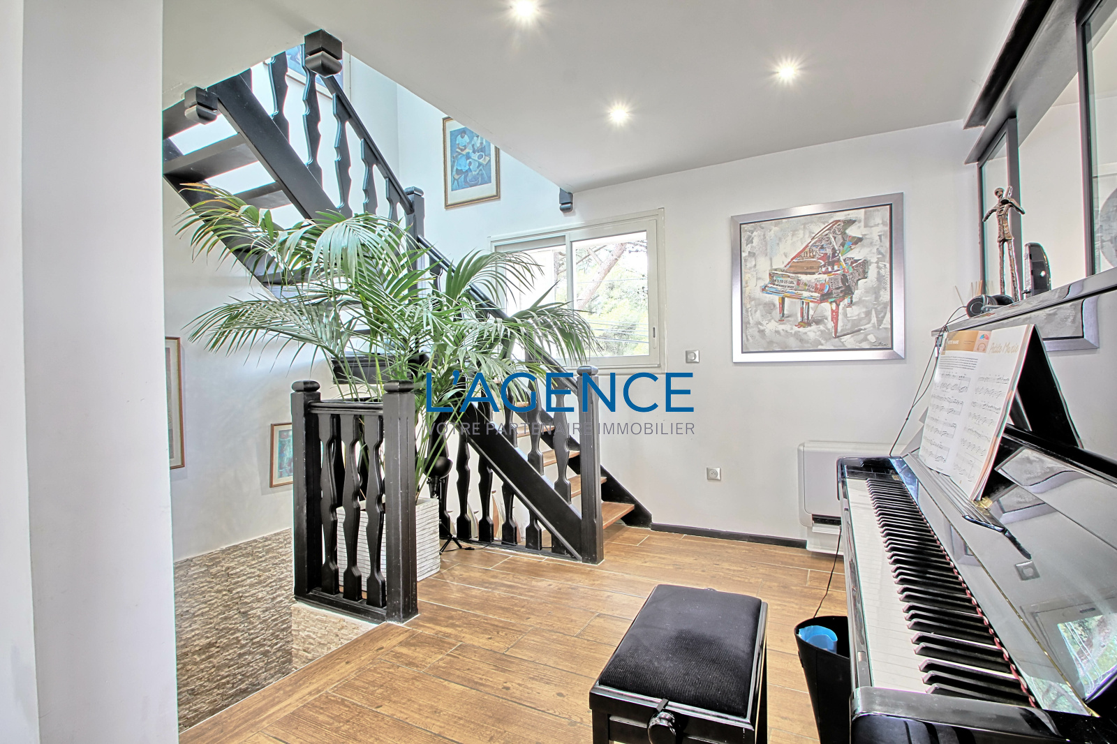 Hyères (83400)L'Ayguade proche plages et vue mer de l'étage, superbe villa de 7 piéces principales d'une surface habitable de 236 m² entiérement rénovée avec goût et prestations haut de gamme, comprenant au rez de jardin : 1 salon TV, cuisine, 2 chambres, salle d'eau avec wc, buanderie et veranda donnant sur jardin. A l'étage: un séjour avec cuisine US entièrement équipée de 70 m² donnant sur terrasse, une suite parentale avec dressing et salle d'eau de 31 m² . Au niveau supérieur : une suite parentale avec salle d'eau et wc de 21 m², une chambrette, un bureau , rangement.