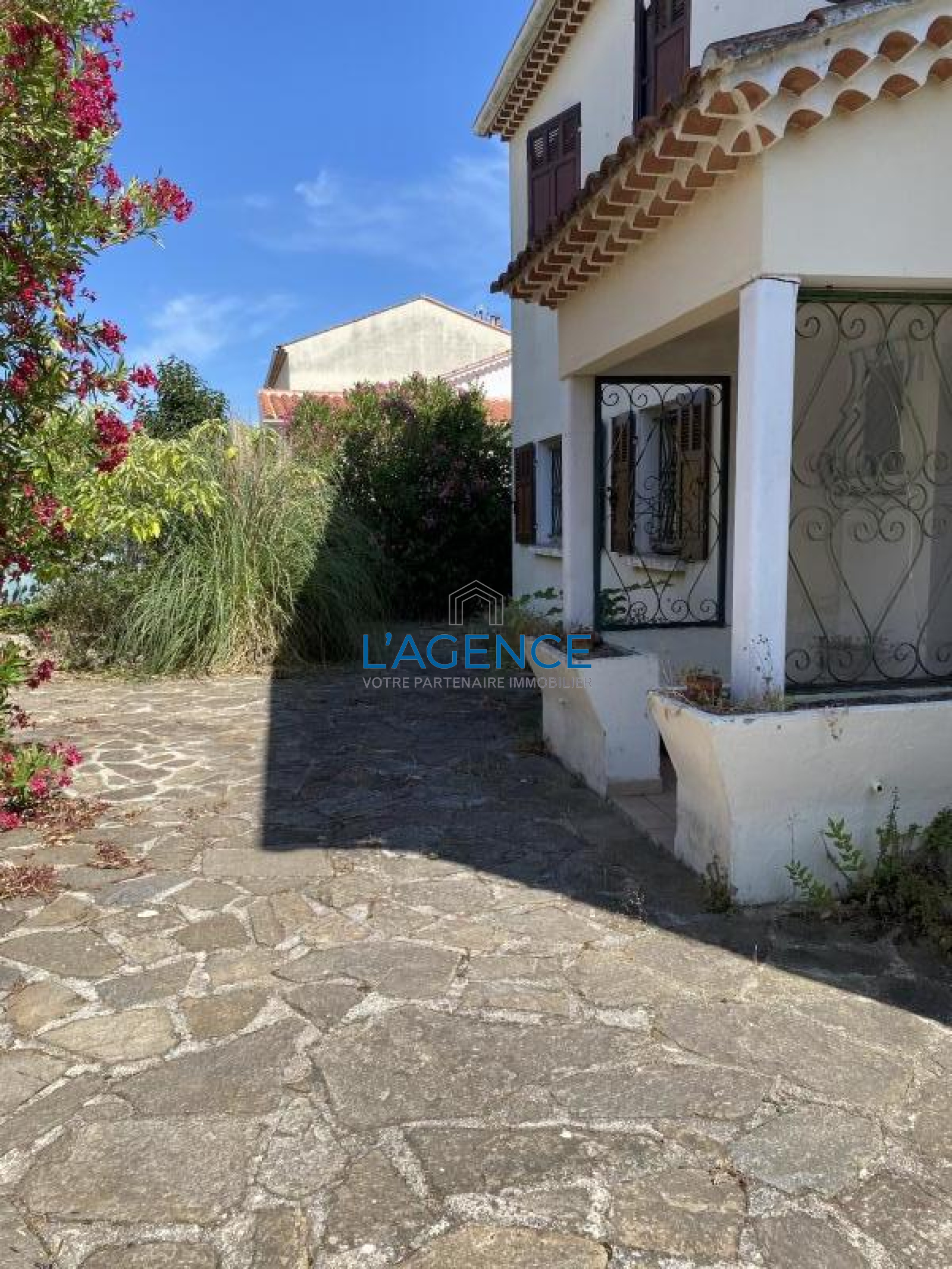 Hyères (83400)Hyères Dans le quartier recherché de Godillot, Villa individuelle T5 sur deux niveaux de 155 m2 divisée en deux appartements de Type T3 chacun. Au rez-de- chaussée un salon séjour avec cuisine séparée , 2 chambres de plain pied avec salle d'eau et garage. A l'étage un autre appartement de type T3 composé de la même manière que celui du bas. Cette villa nécéssite des travaux de rénovation avec la possibilité de réunir les deux appartements en une seule et même maison qui offrira deux chambres de plain pied avec salle d'eau. Grand garage, piscine. Terrain de 525m2 . Accessible au centre ville à pieds et au calme l'emplacement de ce bien est irréprochable. Travaux à prévoir.