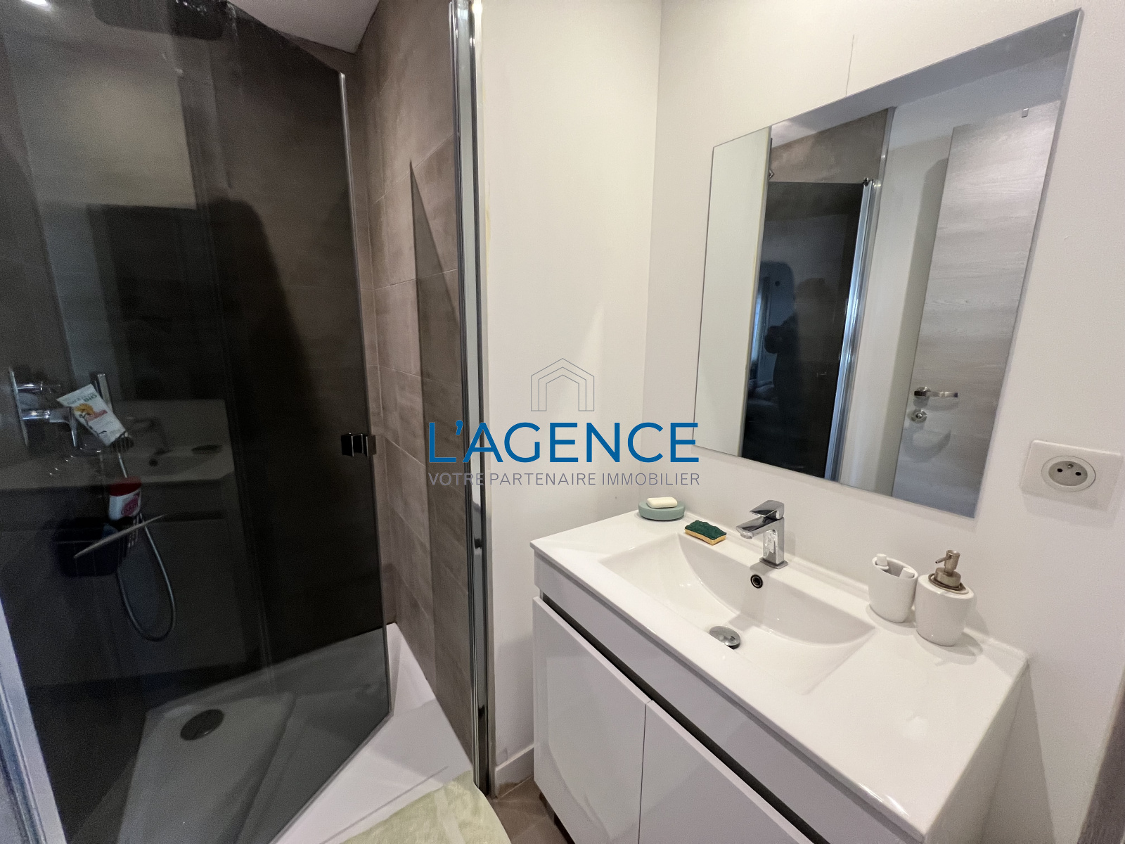 En rez de chaussée, grand T4 de 100m² avec salon séjour et cuisine moderne et équipée donnant sur la piscine et les terrasses, trois belles chambres dont une en suite parentale avec dressing aménagé.