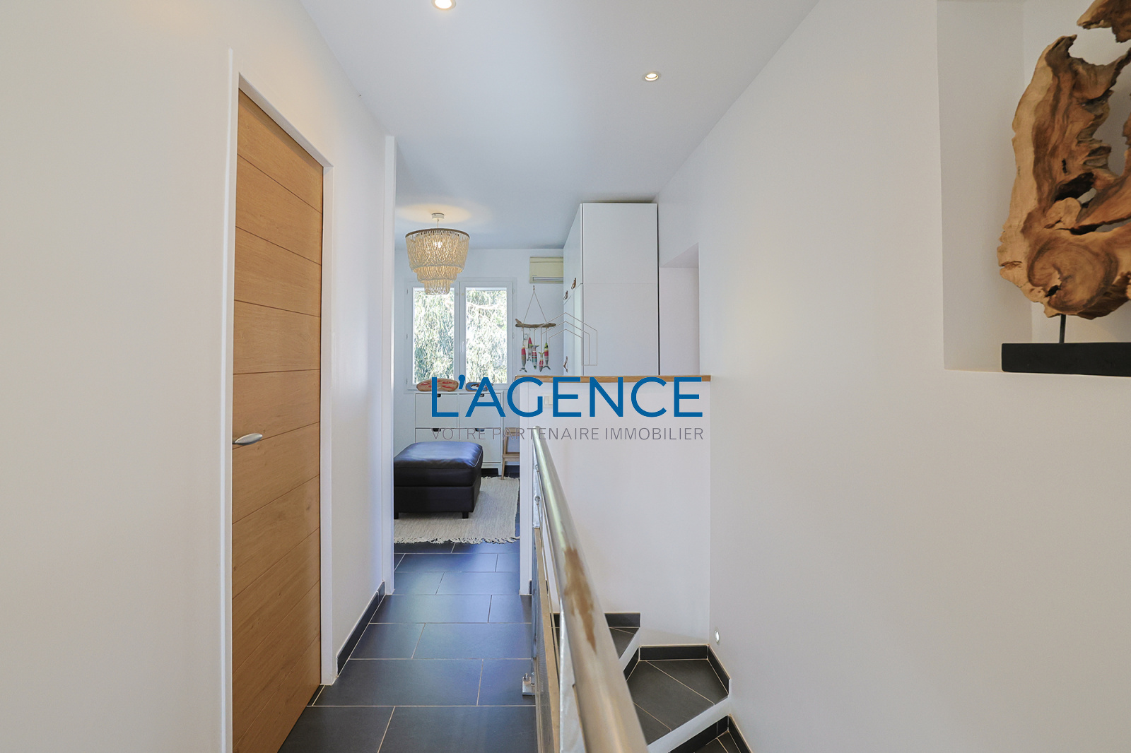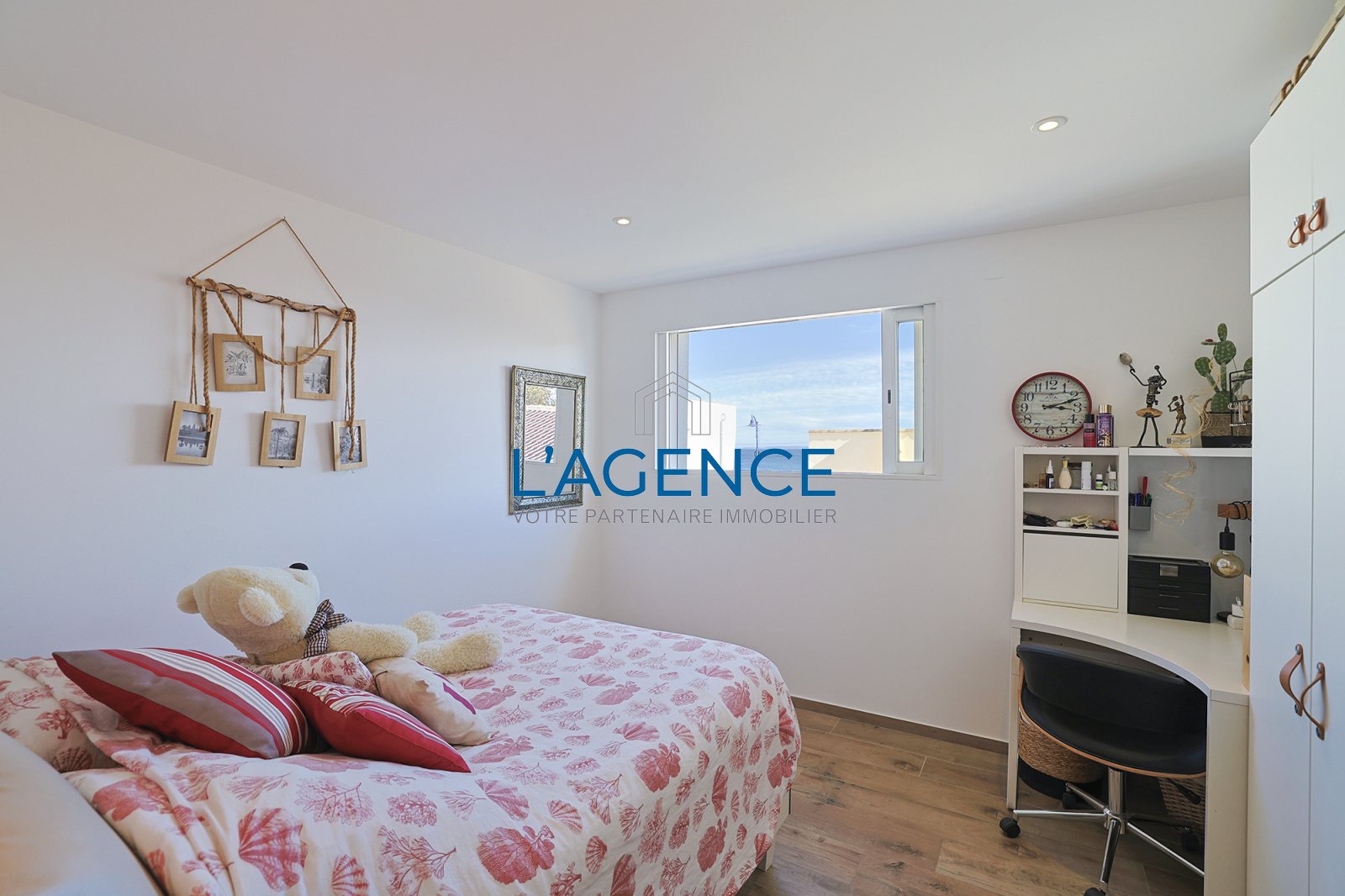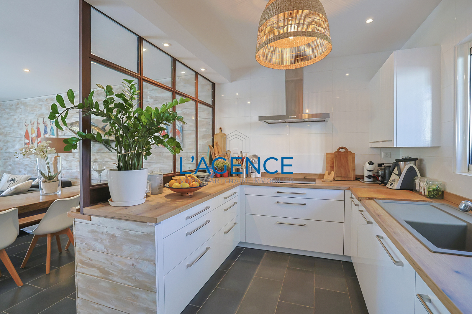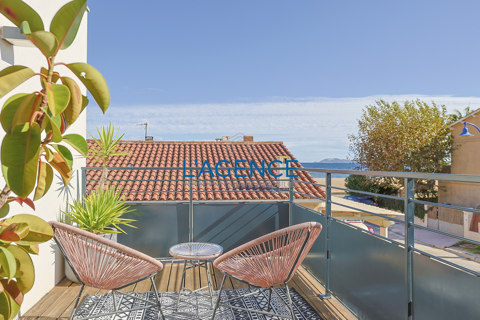 Ayguade ceinturon (83400)Superbe villa de 170 m² entièrement rénovée en bord de mer sur 300m² de terrain. Elle se compose d'une belle pièce de vie ouverte de 60m² donnant sur les terrasses, une chambre de plain pied en suite parentale avec dressing et salle d'eau, un grand cellier. A l'étage un dressing de 11m² et 3 chambres vue mer.