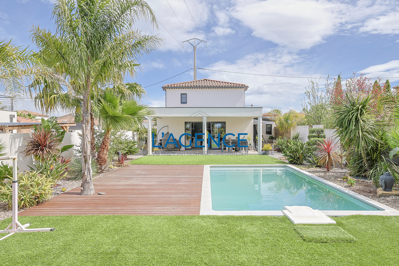 L'espace jardin, très confortable et sans vis à vis, est entièrement arboré et abrite une piscine dans le prolongement de la terrasse. Un garage et 3 places de parking extérieur vous pemrettront de recevoir sans aucune difficulté.